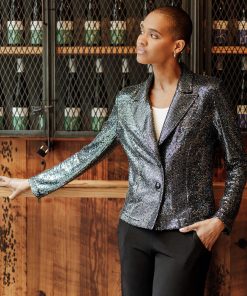 Clara Sunwoo Women’s Shimmer Sequin – Faux Wrap Side Tie Tunic – Silver Pinstripe | Blacksilver