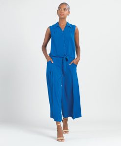 Clara Sunwoo Women’s Soft Textured Rayon – Side Pocket Culotte Pant – Cobalt – Final Sale! | Cobalt