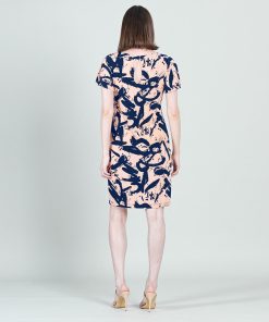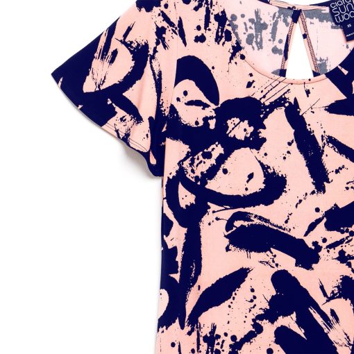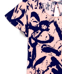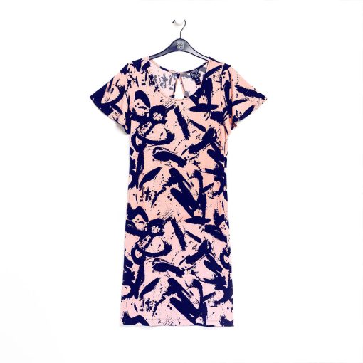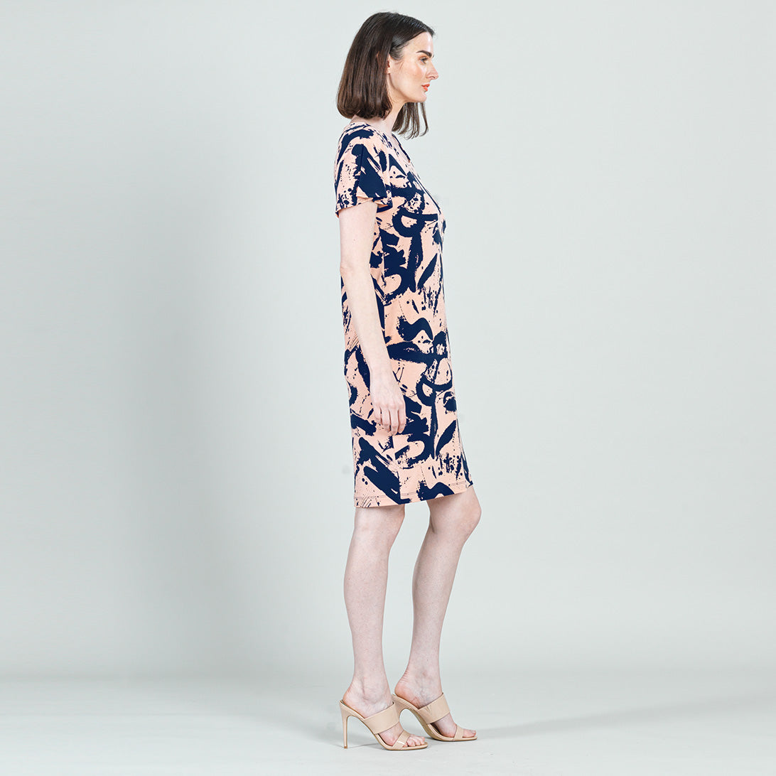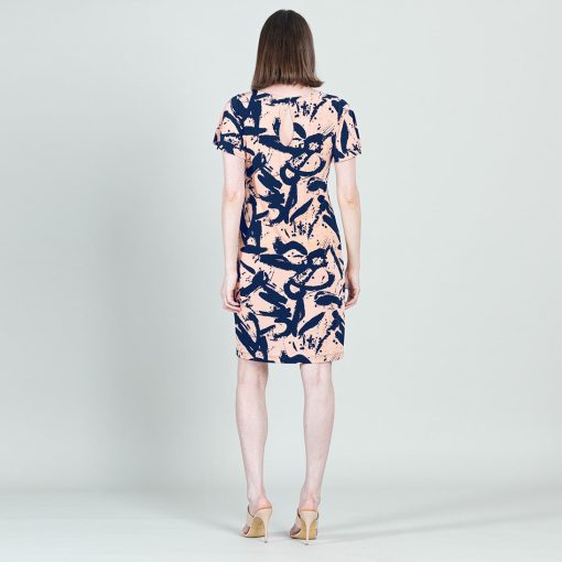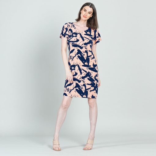 Burst into color by wearing our Splash Stroke Back Keyhole Dress! This dress features Featuring a scoop neckline, short flounce sleeves, a charming, back keyhole cutout, with a relaxed figure-flattering silhouette that softly drapes into a straight hemline. An artistic print, featuring paint splash strokes in shades of navy, against a light coral background with neutral undertones. ♥ Each piece is a unique, one-of-a-kind print and print placement will vary. Carefree Travel Fabric – Soft Silky Knit Our signature poly blend fibers offer luxurious softness with lightweight, wrinkle-free comfort. This easy-care fabric is quick drying and cooler than linen or cotton, making it perfect for on-the-go wear.Wrinkle Free Travel Friendly Ultra Lightweight Soft Knit Fabric Breathable Jersey-Like Feel
