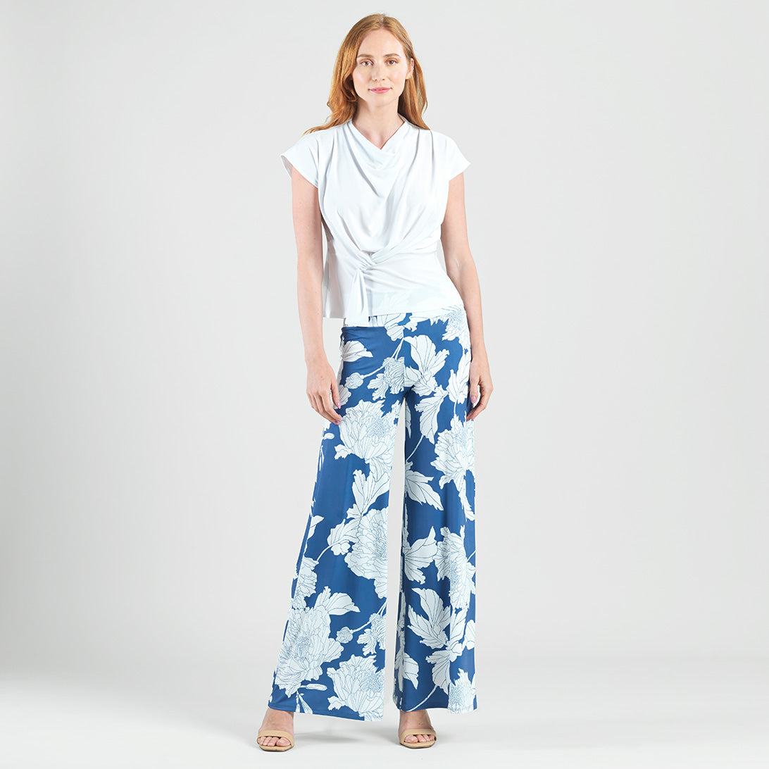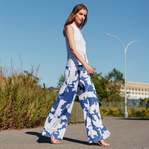 In a garden of style, draw the right amount of attention in our Mum Sketch Palazzo Pant! This style features a 3” pull-on soft waistband and ultra-flattering wide-leg silhouette that naturally flows against the body. An illustration of white large-scale mum flowers encompassed by a steel blue background and sketched lines creates a print that exudes timeless beauty. ♥ Each piece is a unique, one-of-a-kind print and print placement will vary. An elegant, translucent fabric, inspired by luxe satin fibers. Designed to beautifully drape against the body, with the softest, velvety-silken-like finish, while being cool and smooth to the touch. Carefree Travel Fabric – Soft Silky Buttery Knit Our signature poly blend fibers create an ultra-soft, buttery feel that’s wrinkle-free and perfect for traveling. Enjoy the luxurious sensation and an indulgent touch of our fabric – you’ll never want to take it off!3″ Soft Waistband Wrinkle Free Travel Friendly Ultra Lightweight Soft Buttery Knit Fabric Breathable Jersey-Like Feel