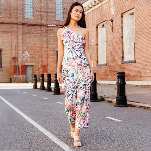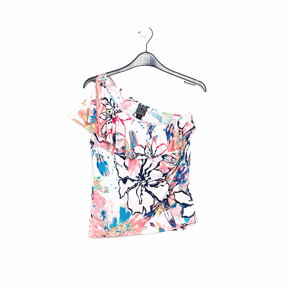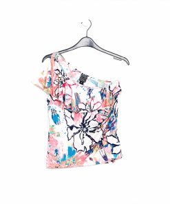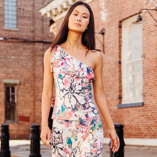 Color yourself pretty, by wearing our Water Floral Ribbon One Shoulder Ruffle Neckline Top! This style features a ruffled, asymmetrical neckline created by a sleek, one-shoulder, bra-friendly strap which displays a charming, ribbon-tie detail, and a straight hemline. An eye-catching print, displaying drawn and watercolor floral shapes in gorgeous warm-pastel shades, against an ivory, uber-soft, butter-knit background. ♥ Each piece is a unique, one-of-a-kind print and print placement will vary. An elegant, translucent fabric, inspired by luxe satin fibers. Designed to beautifully drape against the body, with the softest, velvety-silken-like finish, while being cool and smooth to the touch. Carefree Travel Fabric – Soft Silky Buttery Knit Our signature poly blend fibers create an ultra-soft, buttery feels that’s wrinkle-free and perfect for traveling. Enjoy the luxurious sensation and an indulgent touch of our fabric – you’ll never want to take it off!Wrinkle Free Travel Friendly Ultra Lightweight Soft Buttery Knit Fabric Breathable Jersey-Like Feel