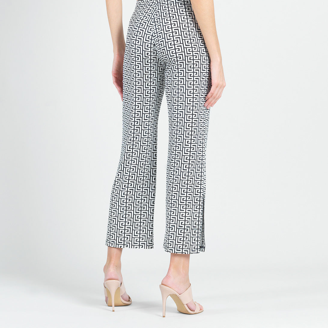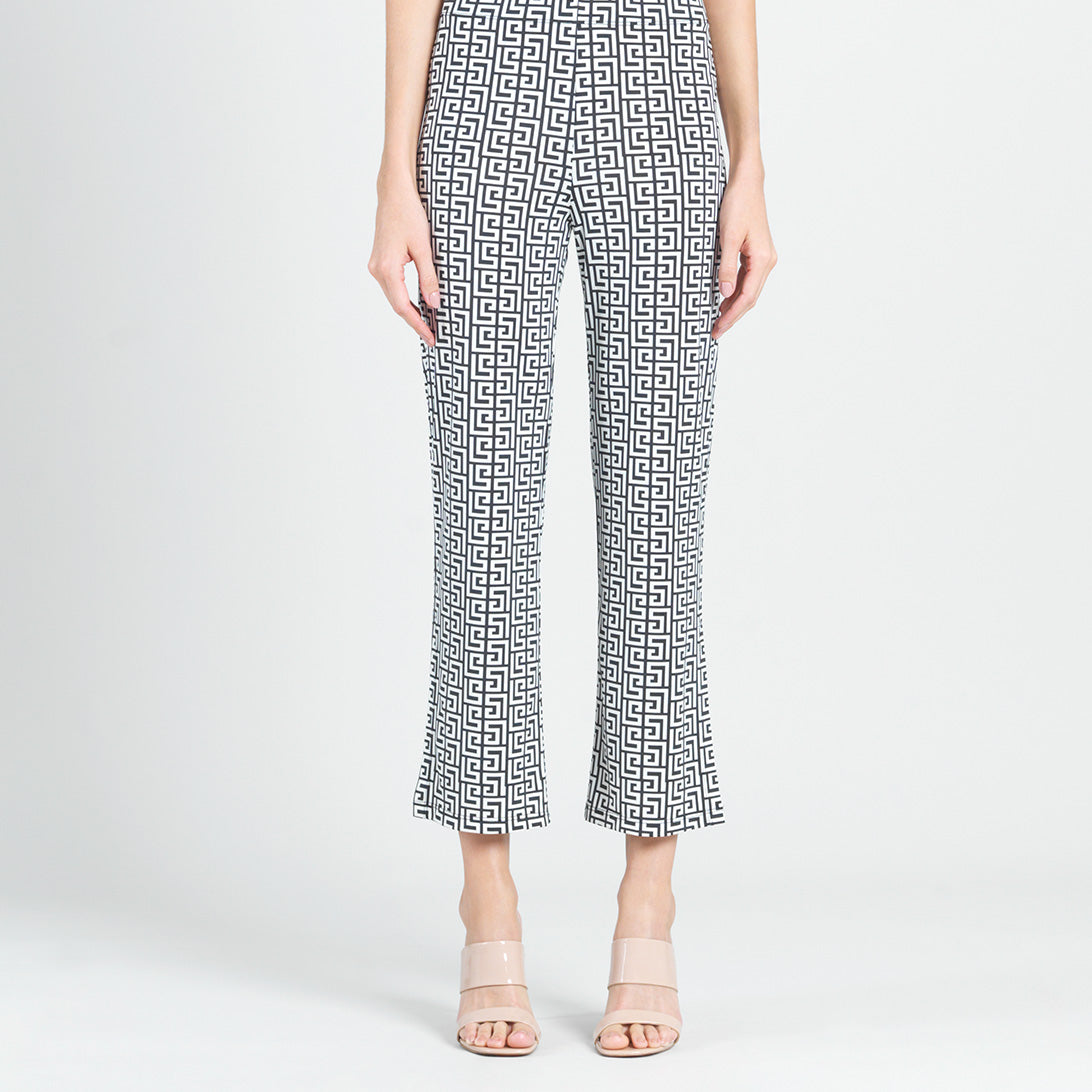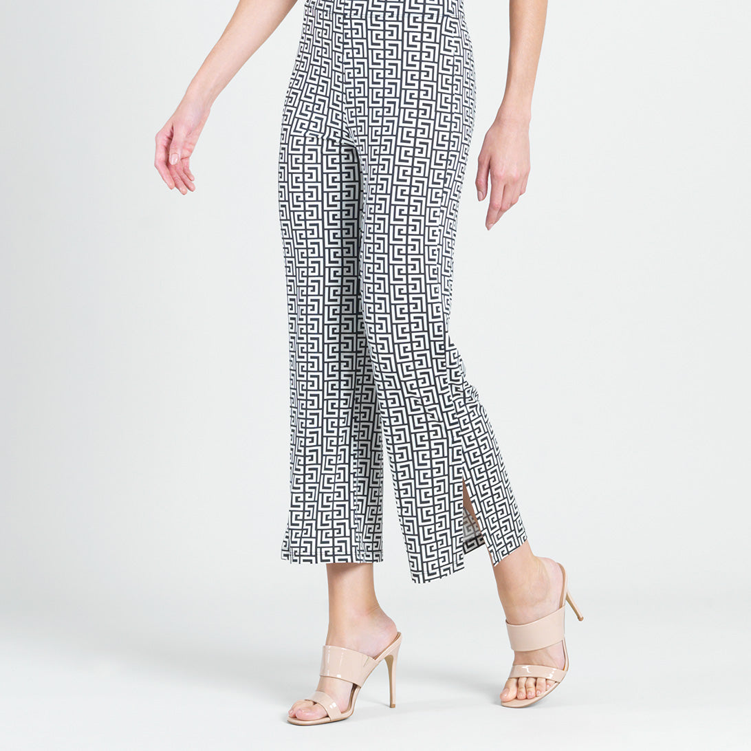 Our Greek Key Butter Knit Side Slit Ankle Pant gives new meaning to the phrase “eternal fashion”! This stylish pant features a 1” pull-on elastic waistband, straight leg with flared hem, and side ankle slit. A graphic print that displays a geometric design of Greek keys formatted in a linear placement that helps to accentuate and flatter the figure. ♥ Each piece is a unique, one-of-a-kind print and print placement will vary. An elegant, translucent fabric, inspired by luxe satin fibers. Designed to beautifully drape against the body, with the softest, velvety-silken-like finish, while being cool and smooth to the touch. Carefree Travel Fabric – Soft Silky Buttery Knit Our signature poly blend fibers create an ultra-soft, buttery feel that’s wrinkle-free and perfect for traveling. Enjoy the luxurious sensation and an indulgent touch of our fabric – you’ll never want to take it off!Wrinkle Free Travel Friendly Ultra Lightweight Soft Buttery Knit Fabric Breathable Jersey-Like Feel