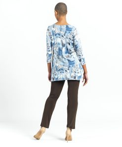 While a picture may be worth a thousand words, our Mosaic Tile Textured Parachute Hem Tunic is that much more beautiful in person! Featuring a round neckline, 3/4 length sleeves, and a side vent parachute hemline. A visually appealing print, featuring an arrangement of tile squares in mosaic shapes displayed in shades of powder and denim blue, and light grey, encompassed by dark and light shades of taupe, with a white embossed texture that creates a 3-dimensional contrast. ♥ Each piece is a unique, one-of-a-kind print and print placement will vary. An elegant, translucent fabric, inspired by luxe satin fibers. Designed to beautifully drape against the body, with the softest, velvety-silken-like finish, while being cool and smooth to the touch. Carefree Travel Fabric – Soft Silky Buttery Knit w/ Embossed Textured Our signature poly blend fibers create an ultra-soft, buttery feel, that’s wrinkle-free and perfect for traveling, featuring an embossed texture. Enjoy the luxurious sensation and an indulgent touch of our fabric – you’ll never want to take it off!Wrinkle Free Travel Friendly Ultra Lightweight Soft Buttery Knit Fabric Breathable Jersey-Like Feel Embossed Threading Detail