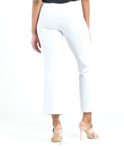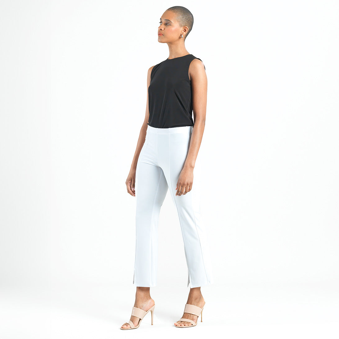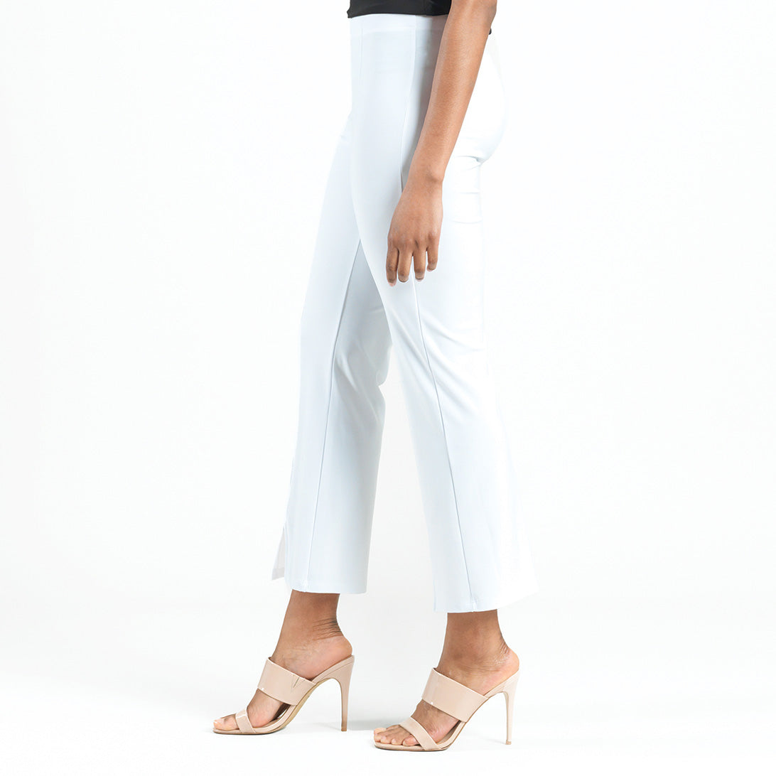 Freshen up your wardrobe by adding our chic Center Seam Front Slit Ankle Pant to it! This stylish pant features a 1” pull-on elastic waistband, vertical center leg seam with a flared ankle-length hem, and sleek front leg slit. Made to provide a slimming silhouette in the hip and thigh area while gradually flaring towards the hem.Carefree Travel Fabric – Soft Silky Knit Our signature poly blend fibers offer luxurious softness with lightweight, wrinkle-free comfort. This easy-care fabric is quick drying and cooler than linen or cotton, making it perfect for on-the-go wear.1″ Elastic Waistband 4.5″ to 5″ Front Slit Flared Opening Center Seam Detail Wrinkle Free Travel Friendly Ultra Lightweight Soft Knit Fabric Breathable Jersey-Like Feel*Some customers may find the White & Ivory colors slightly sheer. Recommended to be worn with long-style tunics that will cover.