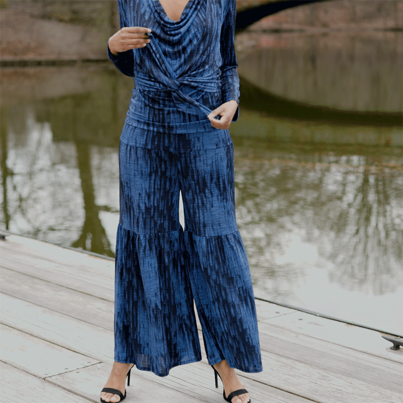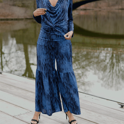 Clara Sunwoo Women’s Crinkle Pleat Knit – 2pc Cardigan & Cowl Tank Twinset – Water Ripple-cobalt – Final Sale! | Cobaltblack