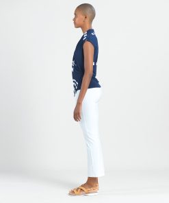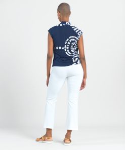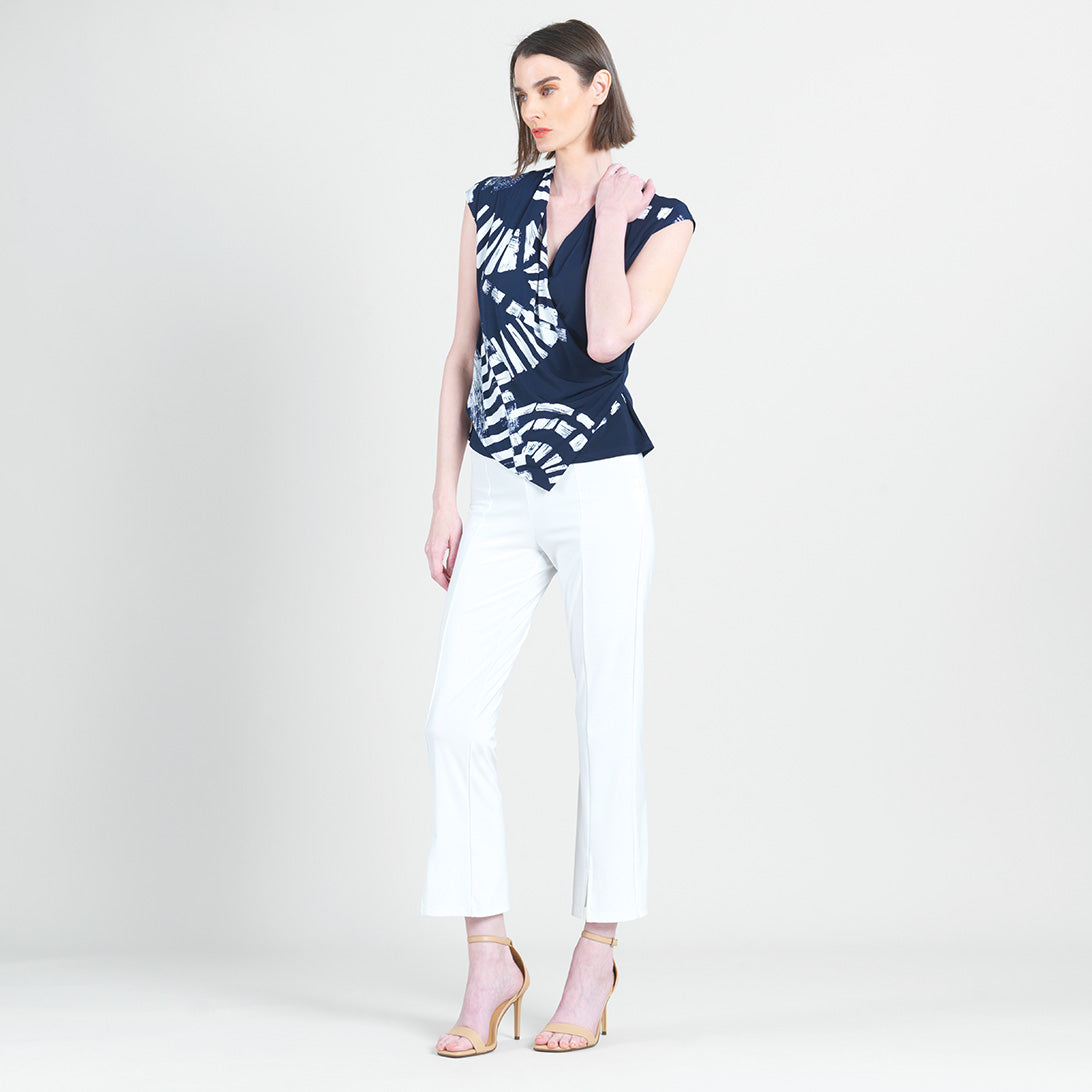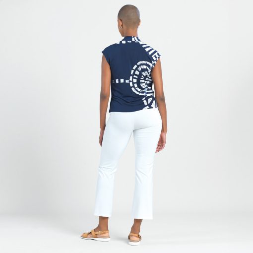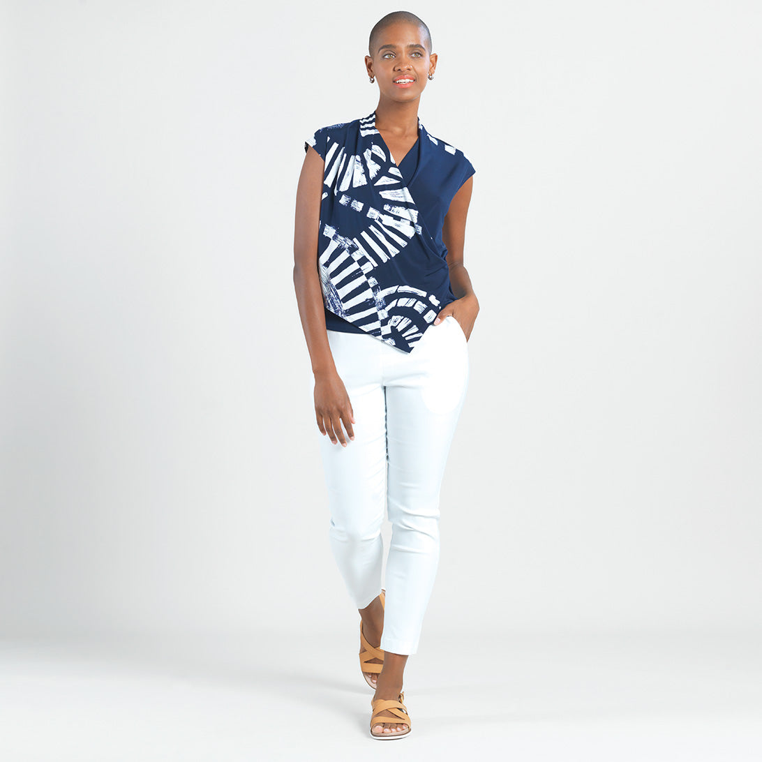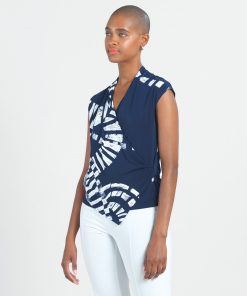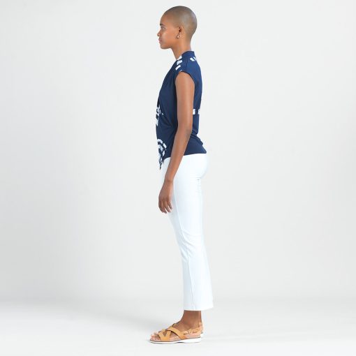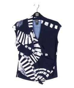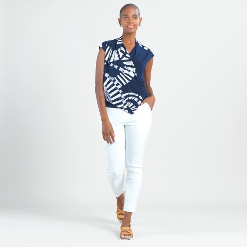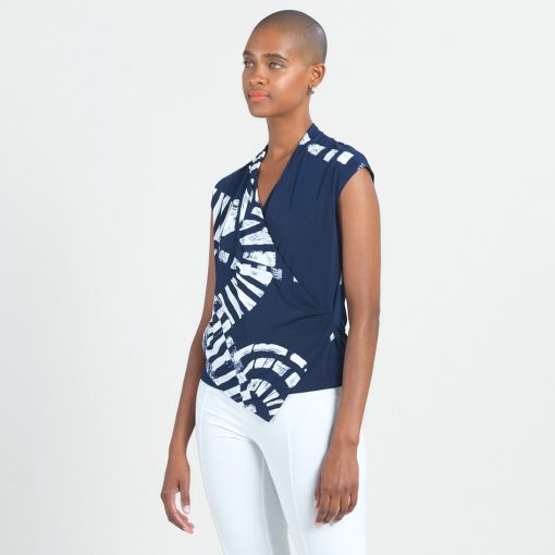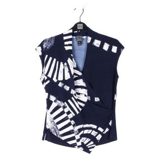 Clara Sunwoo Women’s Crossover Faux Wrap Top – Track Line-navy – Final Sale! | Navywhite