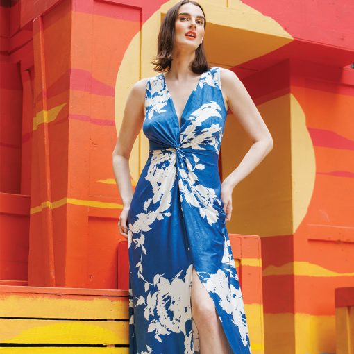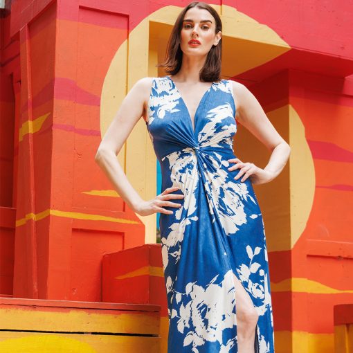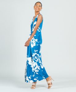 Clara Sunwoo Women’s Crushed Silk Knit – Center Slit Maxi Dress – Dreamy Floral – Final Sale! | Bluewhite