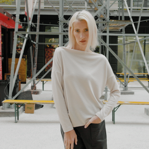 Clara Sunwoo Women’s French Terry-like Knit – Boat Neck Side Ruched Sweater Top – Bone – Final Sale! | Bone
