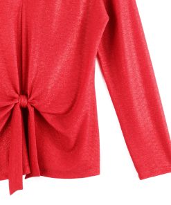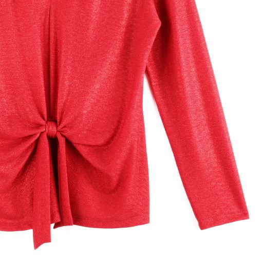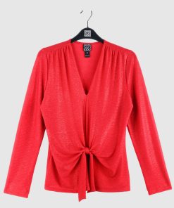 Having a style that allows you to shine in any room is the hope, and our Glimmer Speck V-Neck Center Front Tie Top does just that! This flattering sleeveless top features a classic v-neckline, pleated shoulder seam, a vertical neck-to-hem center seam, and a front-center waist tie that creates a beautiful draped effect that accentuates your natural figure. Our Red glimmer speck is a vivid scarlet red shade with sheen copper undertones. A new iridescent fabric, inspired by opulent Lurex fibers. Crafted with a radiant tinsel-like texture that creates an alluring sparkle with a multi-dimensional textile and sophisticated sheen. Designed with an overall richness and luxurious feel, that offers lightweight stretch, flexibility, and optimal balance. Carefree Travel Fabric – Glimmer Speck High-quality polyester and spandex blend fibers offer luxurious texture with lightweight, wrinkle-free comfort. A fabric elevated by tinsel-like particles and a radiant sheen. This easy-care fabric is quick drying and cooler than linen or cotton, making it perfect for on-the-go wear. Wrinkle Free Travel Friendly Sheen Radiance Tinsel-Speck Texture