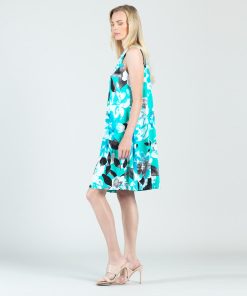 Our Floral Petal Jewel Neck Swing Dress is one you’re bound to pick over and over! Featuring a jewel neckline, a flattering fitted bust-line that generously flares down your body’s natural curves and complements and hides any flaws. A vibrant print, featuring splatters of flowers and petals in shades of blues, grays, white, and black against a cool turquoise background!♥ Each piece is a unique, one-of-a-kind print and print placement will vary. Carefree Travel Fabric – Soft Silky Knit Our signature poly blend fibers offer luxurious softness with lightweight, wrinkle-free comfort. This easy-care fabric is quick drying and cooler than linen or cotton, making it perfect for on-the-go wear.Wrinkle Free Travel Friendly Ultra Lightweight Soft Knit Fabric Breathable Jersey-Like Feel