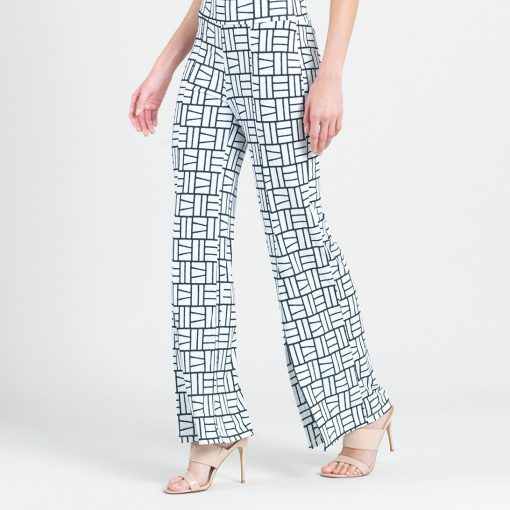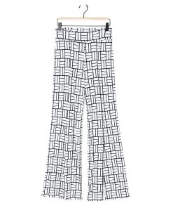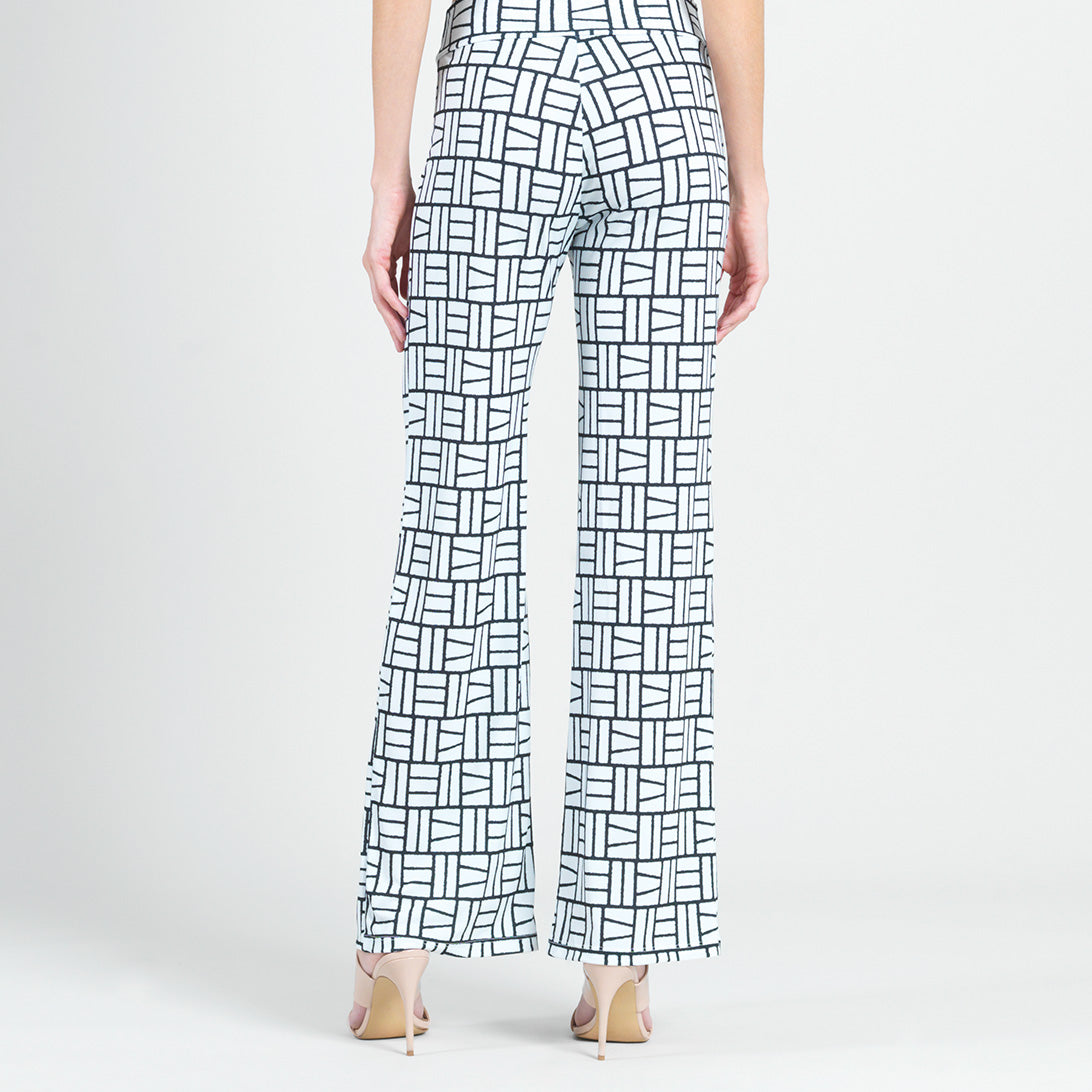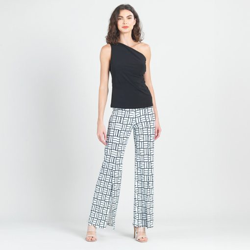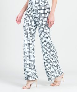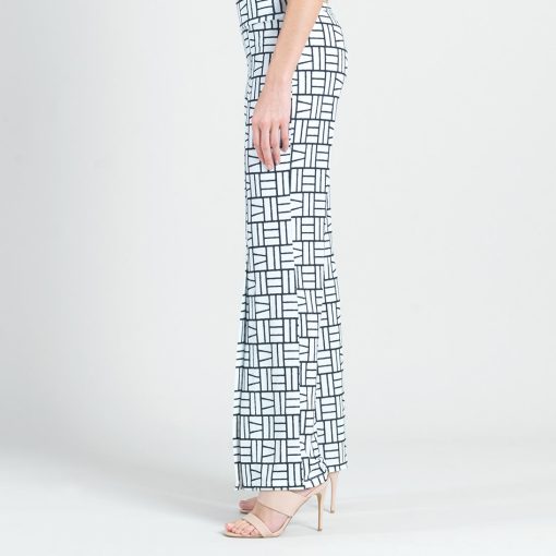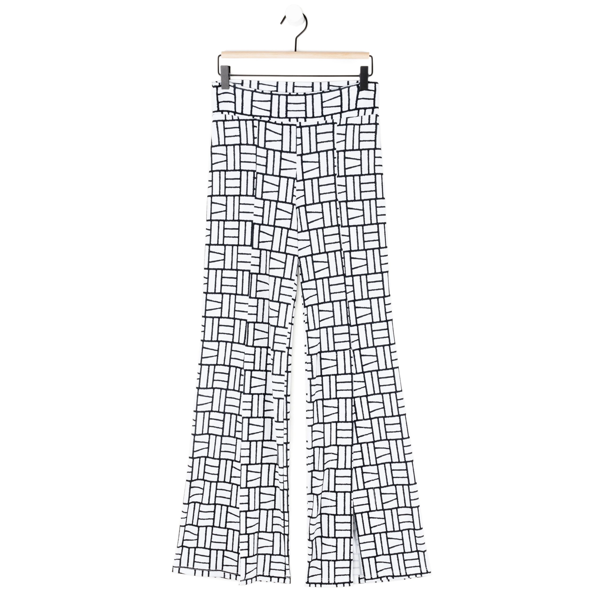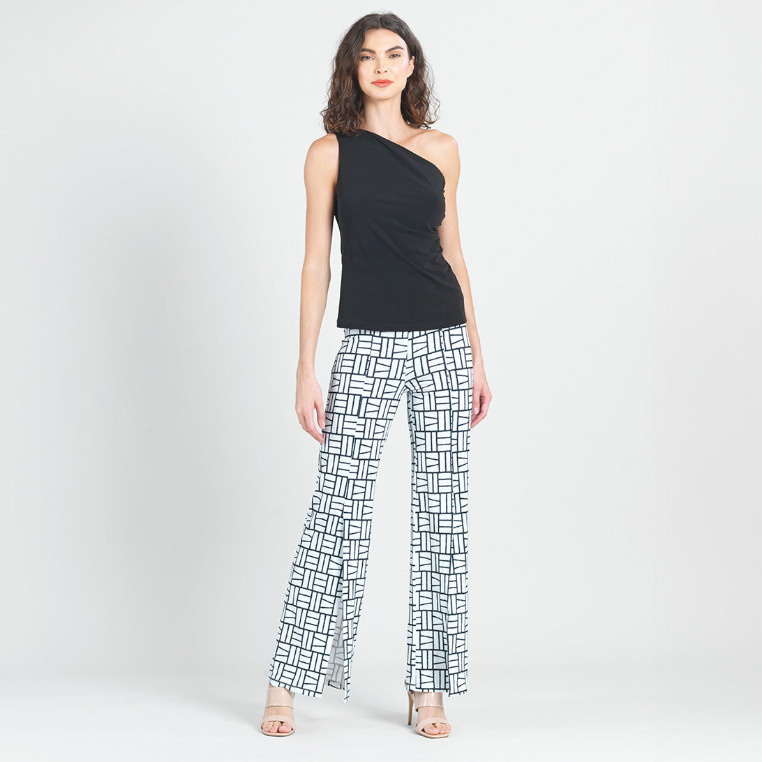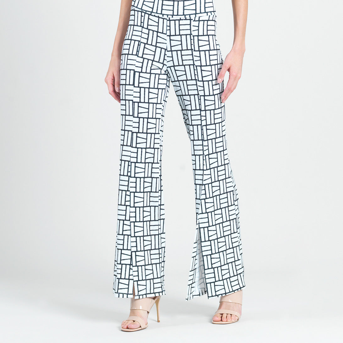 You’re sure to catch everyone’s attention, no matter the circle, when wearing our Geo Rectangle Kick Front High Slit Pant! This pant features a 2” pull-on soft waistband with flared hem and a sleek 20″ front leg slit with center seam detail. Made to provide a slimming silhouette in the hip and thigh area while gradually flaring towards the hem. A classically, flattering print with graphic, bold white rectangular shapes in a brick-like placement against our signature black fabric. ♥ Each piece is a unique, one-of-a-kind print and print placement will vary.Carefree Travel Fabric – Soft Silky Knit Our signature poly blend fibers offer luxurious softness with lightweight, wrinkle-free comfort. This easy-care fabric is quick drying and cooler than linen or cotton, making it perfect for on-the-go wear.2″ Soft Waistband 20″ Front Slit Center Seam Detail Wrinkle Free Travel Friendly Ultra Lightweight Soft Knit Fabric Breathable Jersey-Like Feel