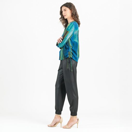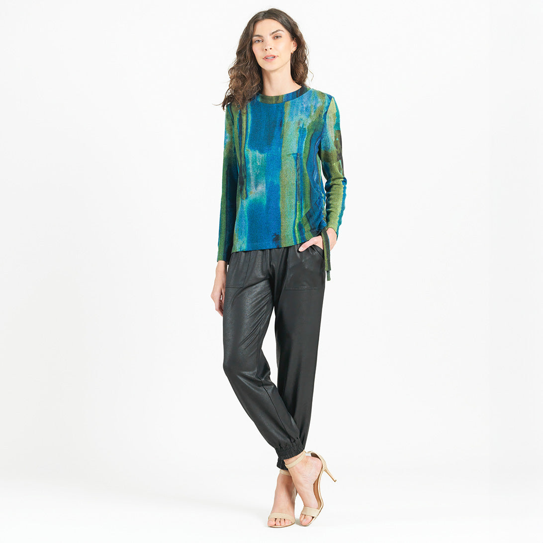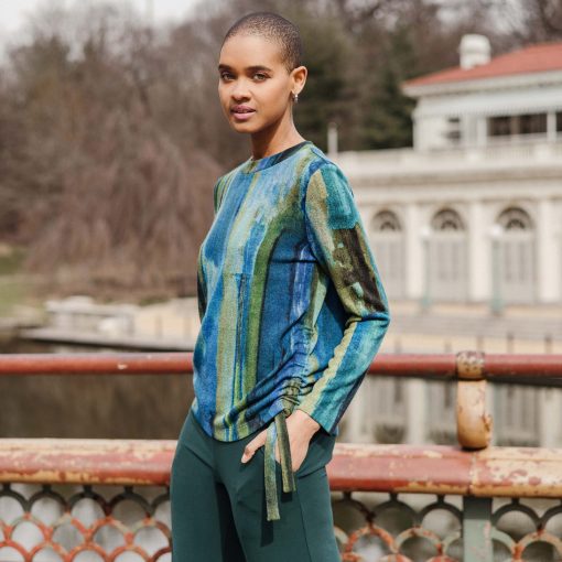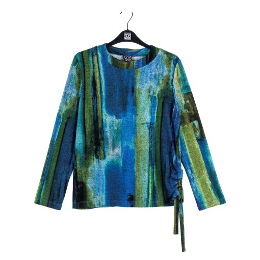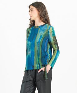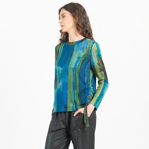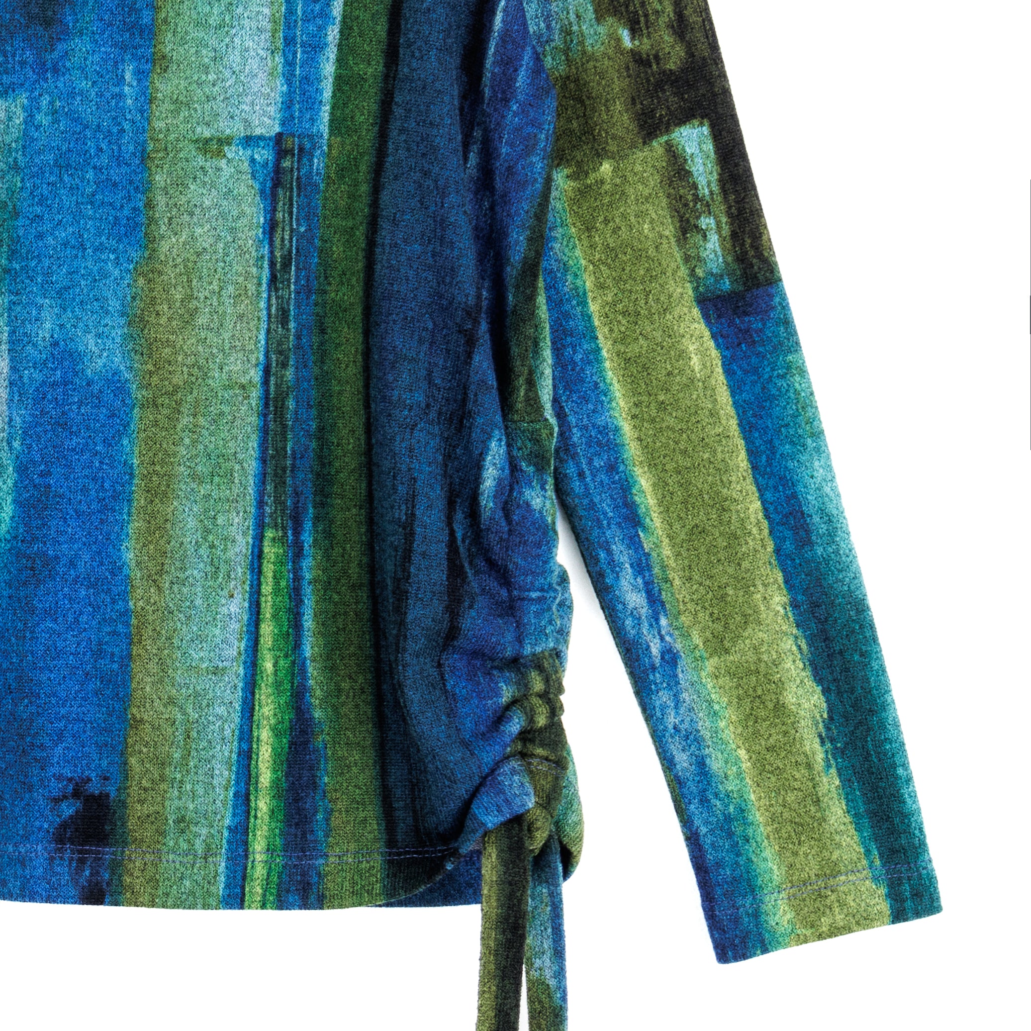 Paint the town in style wearing our Paint Stroke Lightweight Cozy Side Pull-Tie Sweater Top! This sweater features a round neckline, long sleeves, and a straight hemline that displays a left pull-tie detail, allowing you to adjust the silhouette for a custom ruched effect. An artistic print, featuring brush strokes in an array of complementary shades of blue, teal, turquoise, green, and subtle hints of black that create an appealing gradient and beautiful contrast.♥ Each piece is a unique, one-of-a-kind print and print placement will vary. Lightweight Cozy Sweater KnitOur cozy sweaters are designed for optimal comfort and convenience. Made from lightweight soft plush knit and Poly-Blend fibers, they are the perfect addition to any wardrobe. Ideal for layering and is travel-friendly but still breathable enough to keep you from getting too warm. Easy to care for and long-lasting, they are sure to become a staple in your everyday.Travel Friendly Lightweight Sweater Knit Soft Texture