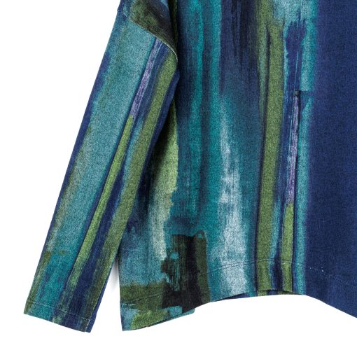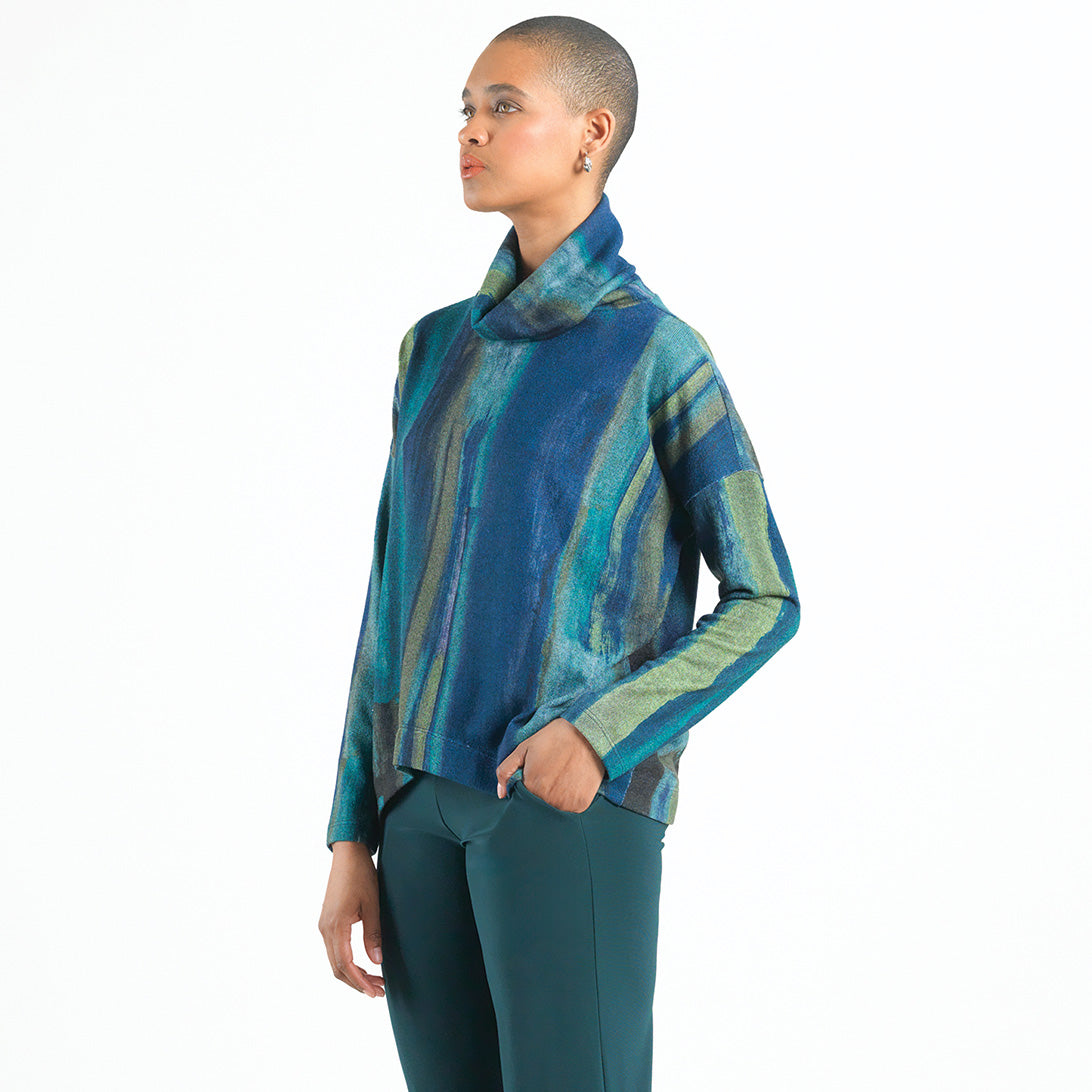 Paint the town in style wearing our Paint Stroke Lightweight Cozy Tipped Hem Sweater Top! This sweater features a cowl-style turtleneck, long sleeves, and a tipped hemline. An artistic print, featuring brush strokes in an array of complementary shades of blue, teal, turquoise, green, and subtle hints of black that create an appealing gradient and beautiful contrast.♥ Each piece is a unique, one-of-a-kind print and print placement will vary. Lightweight Cozy Sweater KnitOur cozy sweaters are designed for optimal comfort and convenience. Made from lightweight soft plush knit and Poly-Blend fibers, they are the perfect addition to any wardrobe. Ideal for layering and is travel-friendly but still breathable enough to keep you from getting too warm. Easy to care for and long-lasting, they are sure to become a staple in your everyday.Travel Friendly Lightweight Sweater Knit Soft Texture
