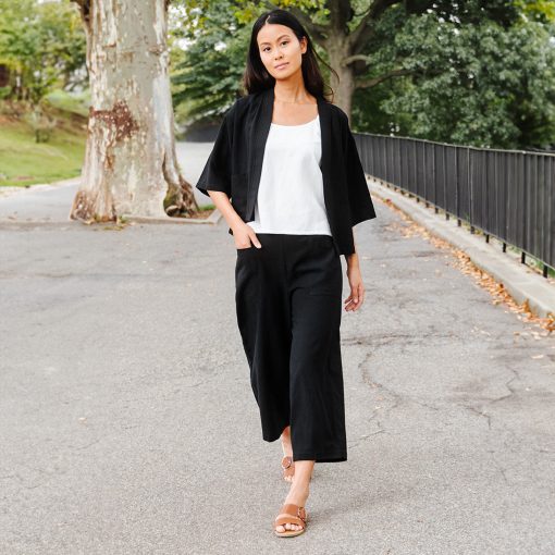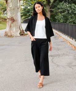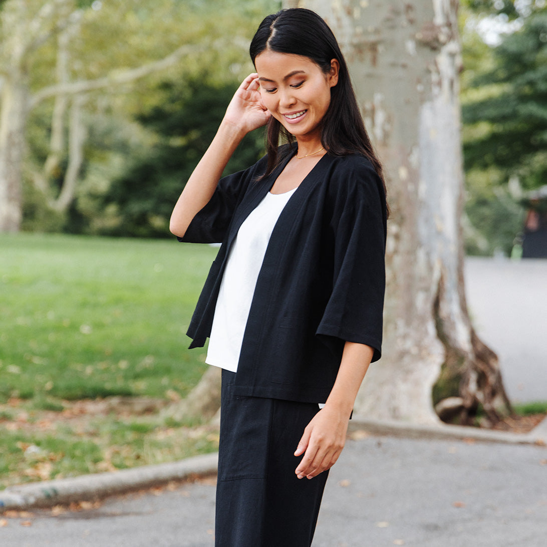 Our Linen Knit Hi-Low Pocket Cardigan Jacket is a versatile style with a modern silhouette! Featuring elbow-length sleeves, an open front with pockets, 4.25″ side vents, a hi-low hemline, and a vertical center back seam. A new, opaque matte fabric, inspired by linen fibers. Designed with superb wearability, an earthy texture, and a structured mid-weight finish. It is durable, easy to maintain, and contains high moisture absorption properties which make it suitable for different climates, with a crisp, polished look.Carefree Travel Fabric – Soft Linen-Cotton Knit Our viscose-linen-cotton blend is a substantial mid-weight fabric, with exceptional breathability and an earthy-like texture. This long-lasting fabric is sturdy, with an inherent softness and cool comfort. The combination of each fabric content offers a light structure and fluid drape, making it less prone to wrinkles, and a truly versatile material.Hi-Low Hemline Subtle Earthy-Texture Travel Friendly Mid-Weight Fabric Breathable and Sturdy Finish