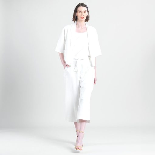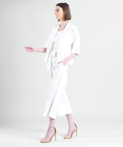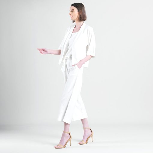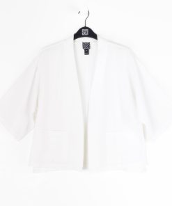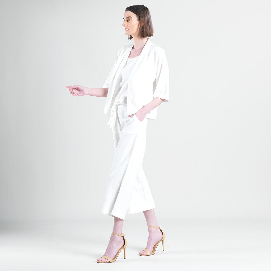 Our Linen Knit Hi-Low Pocket Cardigan Jacket is a versatile style with a modern silhouette! Featuring elbow-length sleeves, an open front with pockets, 4.25″ side vents, a hi-low hemline, and a vertical center back seam.Our linen Ivory shade is an off-white color with neutral undertones. A new, opaque matte fabric, inspired by linen fibers. Designed with superb wearability, an earthy texture, and a structured mid-weight finish. It is durable, easy to maintain, and contains high moisture absorption properties which make it suitable for different climates, with a crisp, polished look.Carefree Travel Fabric – Soft Linen-Cotton Knit Our viscose-linen-cotton blend is a substantial mid-weight fabric, with exceptional breathability and an earthy-like texture. This long-lasting fabric is sturdy, with an inherent softness and cool comfort. The combination of each fabric content offers a light structure and fluid drape, making it less prone to wrinkles, and a truly versatile material.Hi-Low Hemline Subtle Earthy-Texture Travel Friendly Mid-Weight Fabric Breathable and Sturdy Finish