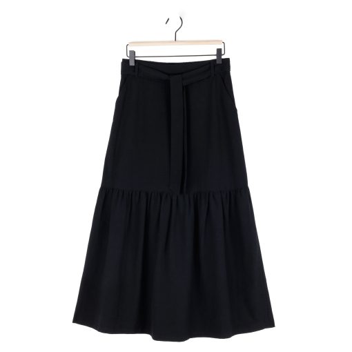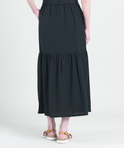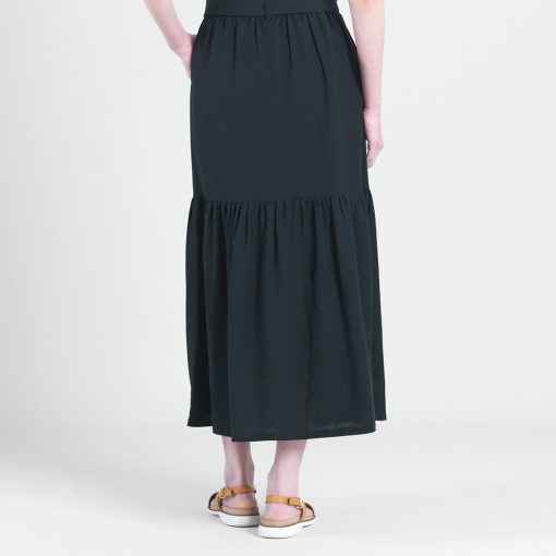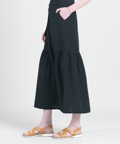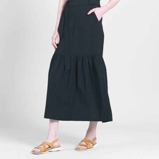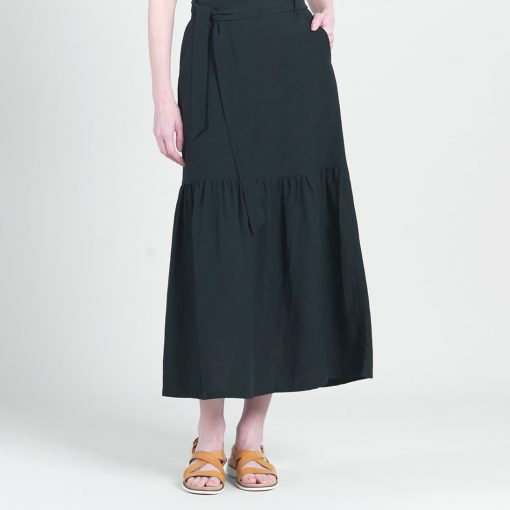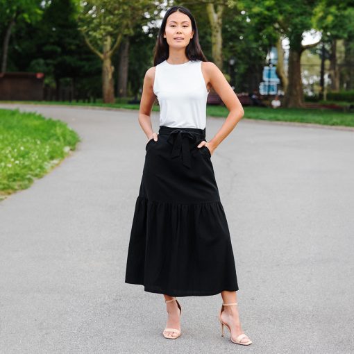 Clara Sunwoo Women’s Linen Knit – Tie Waist Tiered Maxi Skirt – Black – Final Sale! | Black