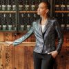 Prepare for the “Where did you get that?” questions – because our Liquid Leather Studded Jacket is that special! Featuring a beautiful fold-over collar with notched lapel, long sleeves, silver a-symmetrical zip closure, and gorgeous stud embellishments on the forearm, shoulders, and down the back, and a seamed bodice with front and backstitching. Our Cobalt shade is a true royal blue color with deep vivid undertones. Made from our beautiful signature stretch knit, extremely lightweight soft “lambskin feel” fabric with a soft matte finish. The interior is made from soft knit giving it the right amount of stretch and providing you with breathable superb wear best of all it’s vegan friendly! Liquid Leather KnitThis vegan-friendly fabric offers superior comfort and style. Crafted from our signature flexible polyester blend and coated in a faux leather-like matte finish, it’s cool to the touch, quick-drying, and easy to maintain. Enjoy the look and feel of leather without the guilt!Travel Friendly Ultra Lightweight Soft Knit Fabric – Faux Leather Matte FinishStud Embellishments Vegan Friendly!