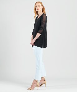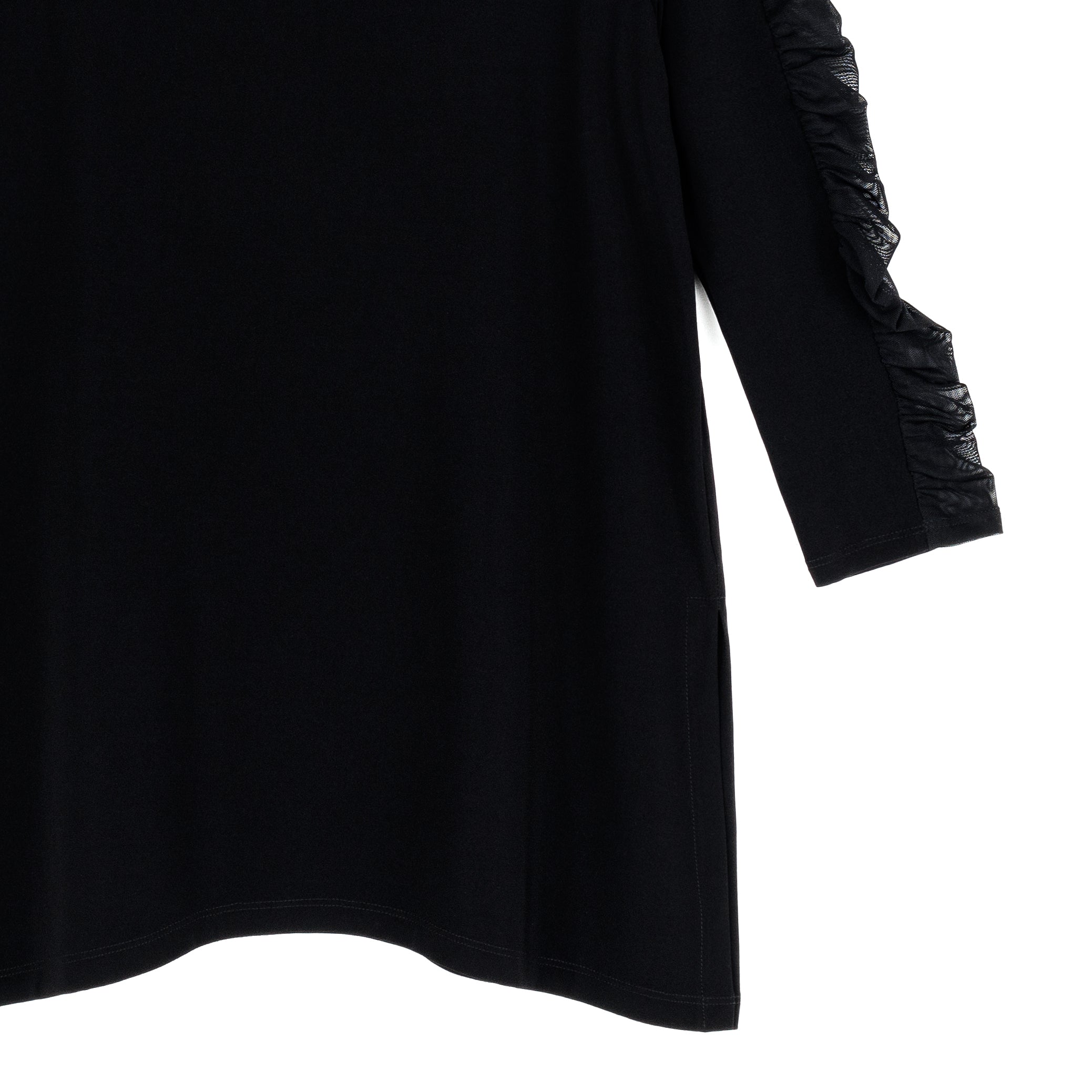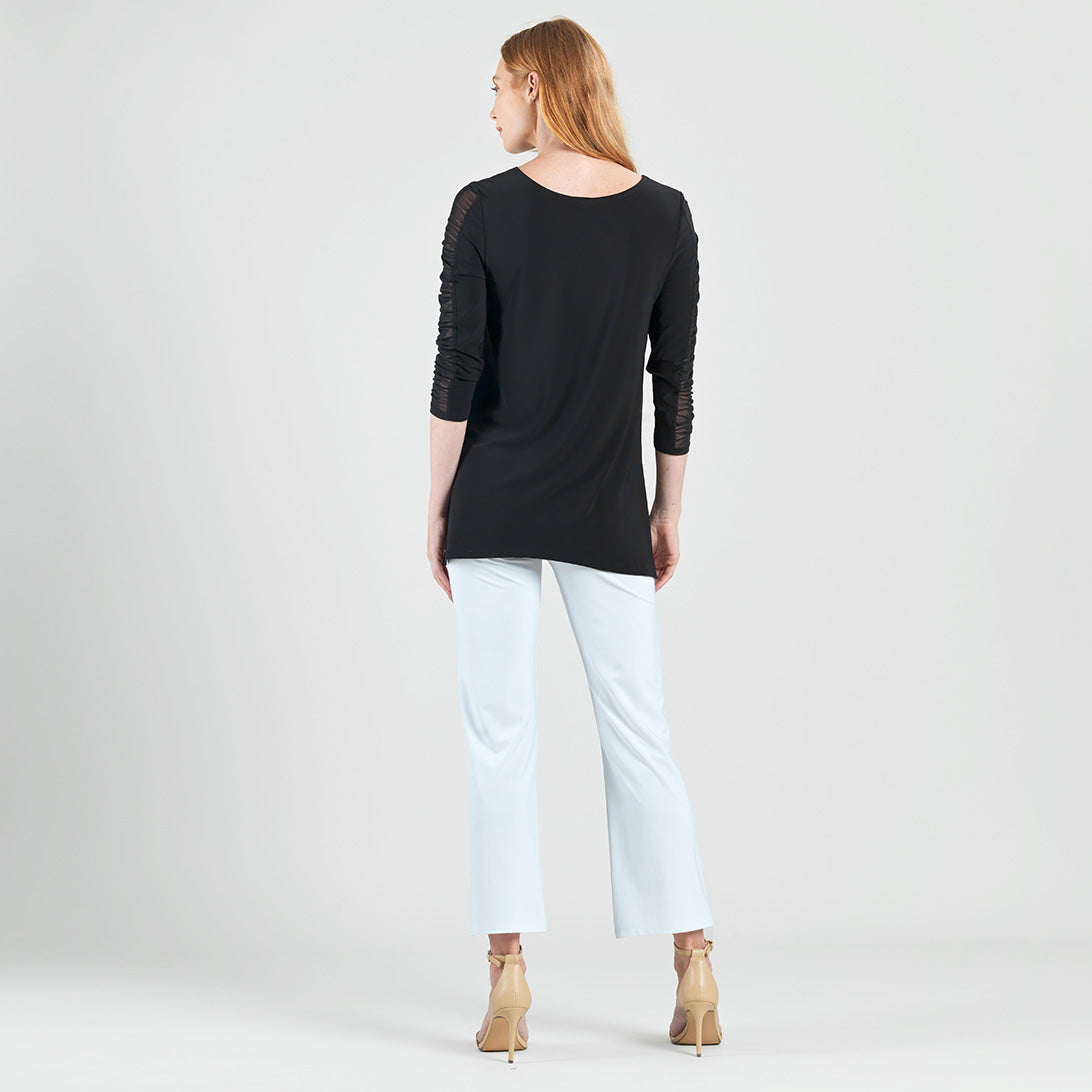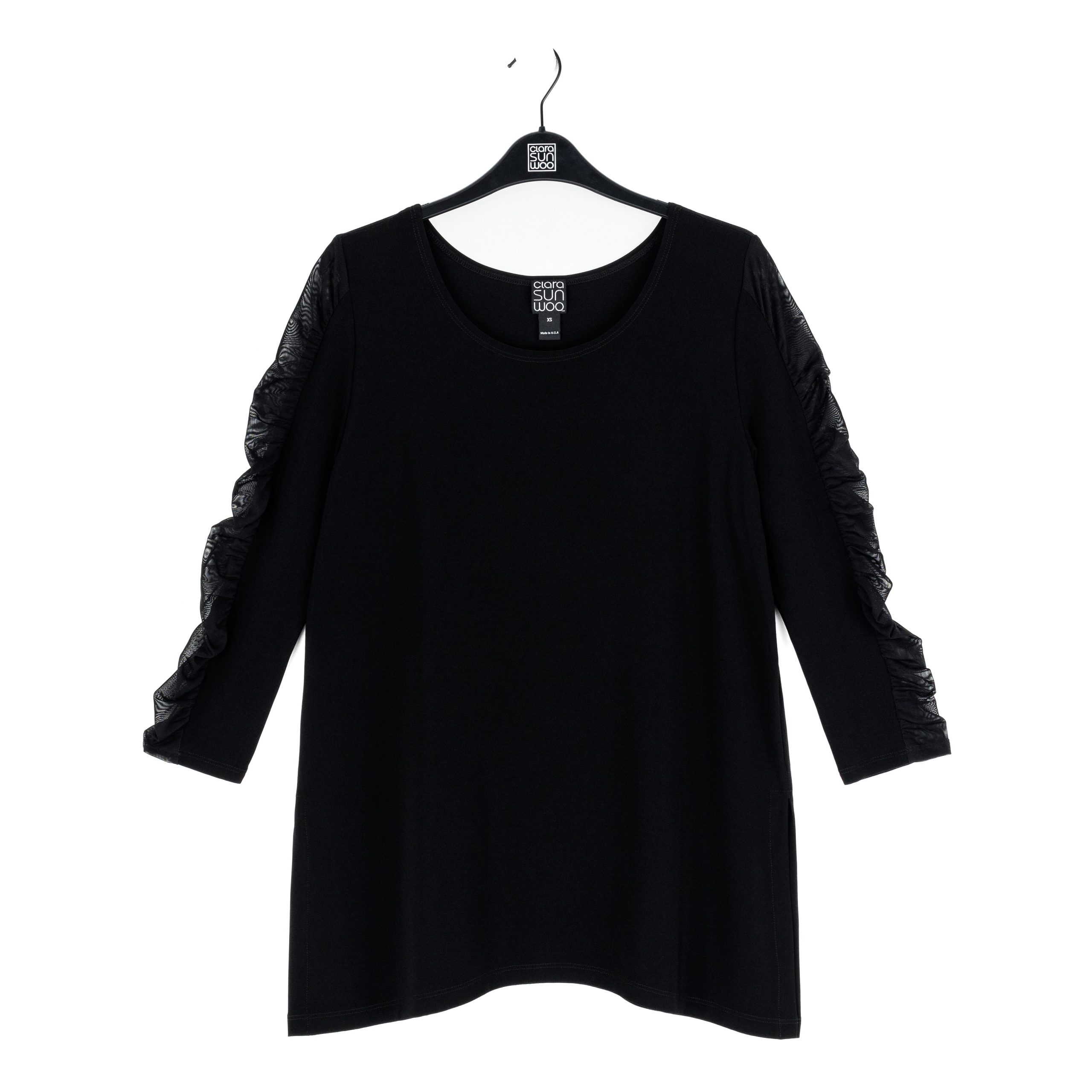 Amp up your style and experience sheer magic in our Mesh Panel Sleeve Side Vent Tunic! This tunic features a scoop neckline, 3/4 length ruched mesh panel sleeves, and a shark bite hemline with 8.5″ dual side vents that create a flattering silhouette. Carefree Travel Fabric – Soft Silky Knit Our signature poly blend fibers offer luxurious softness with lightweight, wrinkle-free comfort. This easy-care fabric is quick drying and cooler than linen or cotton, making it perfect for on-the-go wear.Mesh Panel Sleeves 8.5″ Side Vents Wrinkle Free Travel Friendly Ultra Lightweight Soft Knit Fabric Breathable Jersey-Like Feel