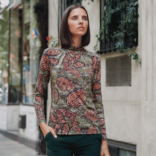 Get ready to ‘foliage’ in love with our Mosaic Leaves Mock Neck Pleated Detail Top! Featuring a mock neckline, long sleeves, and a feminine, center pleated detail that begins at the neck and transitions out to a soft-draped body and straight hemline. A beautiful mosaic of Autumn leaves that display rich, earth-tone shades of terracotta, fern green, black, and subtle hints of white, inspired by nature’s artistry. ♥ Each piece is a unique, one-of-a-kind print and print placement will vary. Carefree Travel Fabric – Soft Silky Knit Our signature poly blend fibers offer luxurious softness with lightweight, wrinkle-free comfort. This easy-care fabric is quick drying and cooler than linen or cotton, making it perfect for on-the-go wear.Wrinkle Free Travel Friendly Ultra Lightweight Soft Knit Fabric Breathable Jersey-Like Feel