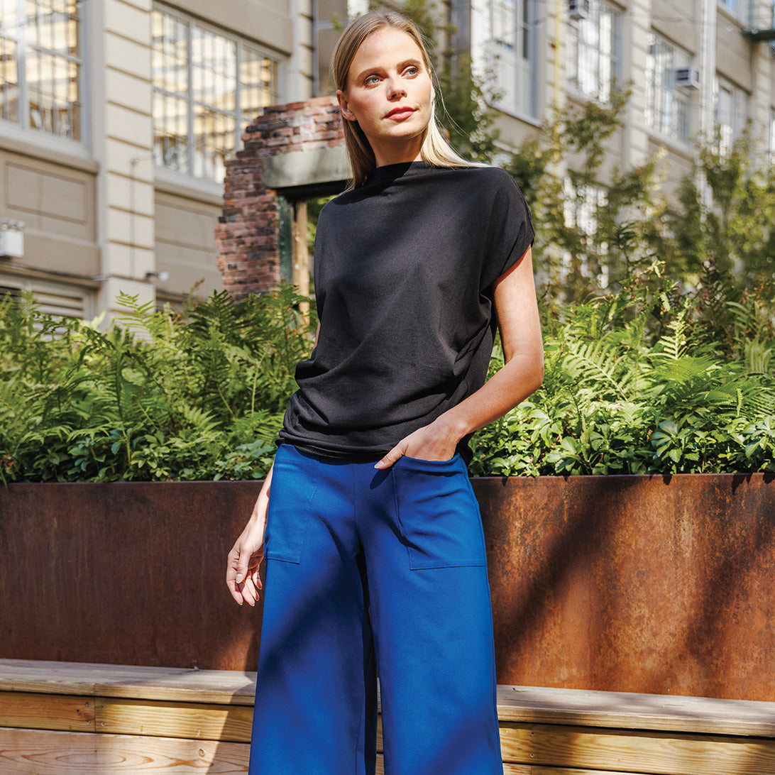 Clara Sunwoo Women’s Modal Cotton – Funnel Neck Side Cinched Top – Black – Final Sale! | Black