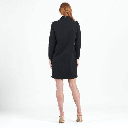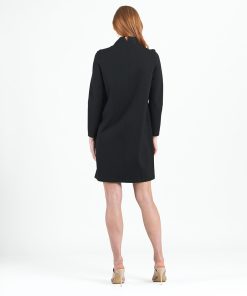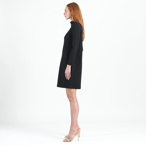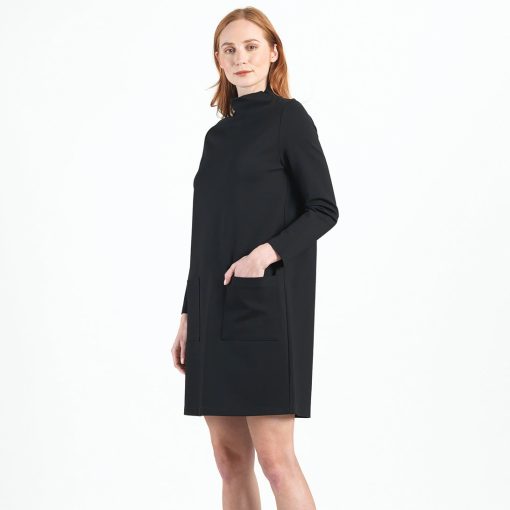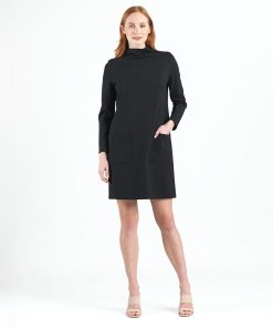 Our Ponte Funnel Neck Tunic Sweater Dress is a timeless and tasteful style piece that can easily be dressed up or down to suit any occasion. Crafted with a luxurious funnel neckline, thoughtfully-placed standard pockets, and a graceful straight hemline, this dress is a perfect embodiment of modern elegance and effortless style. Style it with slim-fitting pants or leggings for a chic and sophisticated look.Standard Ponte Knit Fabric Our Ponte Poly Blend Fabric is perfect for those seeking the ideal blend of stability and softness. Its thick double-knit composition provides superior shape retention and a luxurious matte finish, while the added thickness offers a premium feel. Enjoy a classic, polished look without sacrificing comfort. Soft, Structured Feel Thicker Than Jersey-Knit