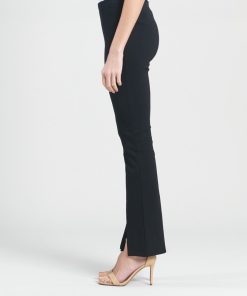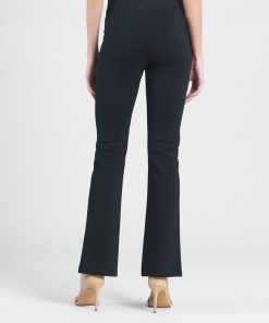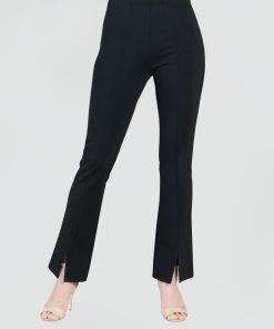 Our sleek and chic Ponte Kick Front Slit Pant is all the style you need. This pant features a 1” pull-on elastic waistband, vertical center leg seam with a flared hem, and sleek front leg slit. Made to provide a slimming silhouette in the hip and thigh area while gradually flaring towards the hem. Standard Ponte Knit Fabric Our Ponte Poly Blend Fabric is perfect for those seeking the ideal blend of stability and softness. Its thick double-knit composition provides superior shape retention and a luxurious matte finish, while the added thickness offers a premium feel. Enjoy a classic, polished look without sacrificing comfort. 1″ Elastic Waistband 4.5″ to 5″ Front Slit Flared Opening Soft, Structured Feel Thicker Than Jersey-Knit