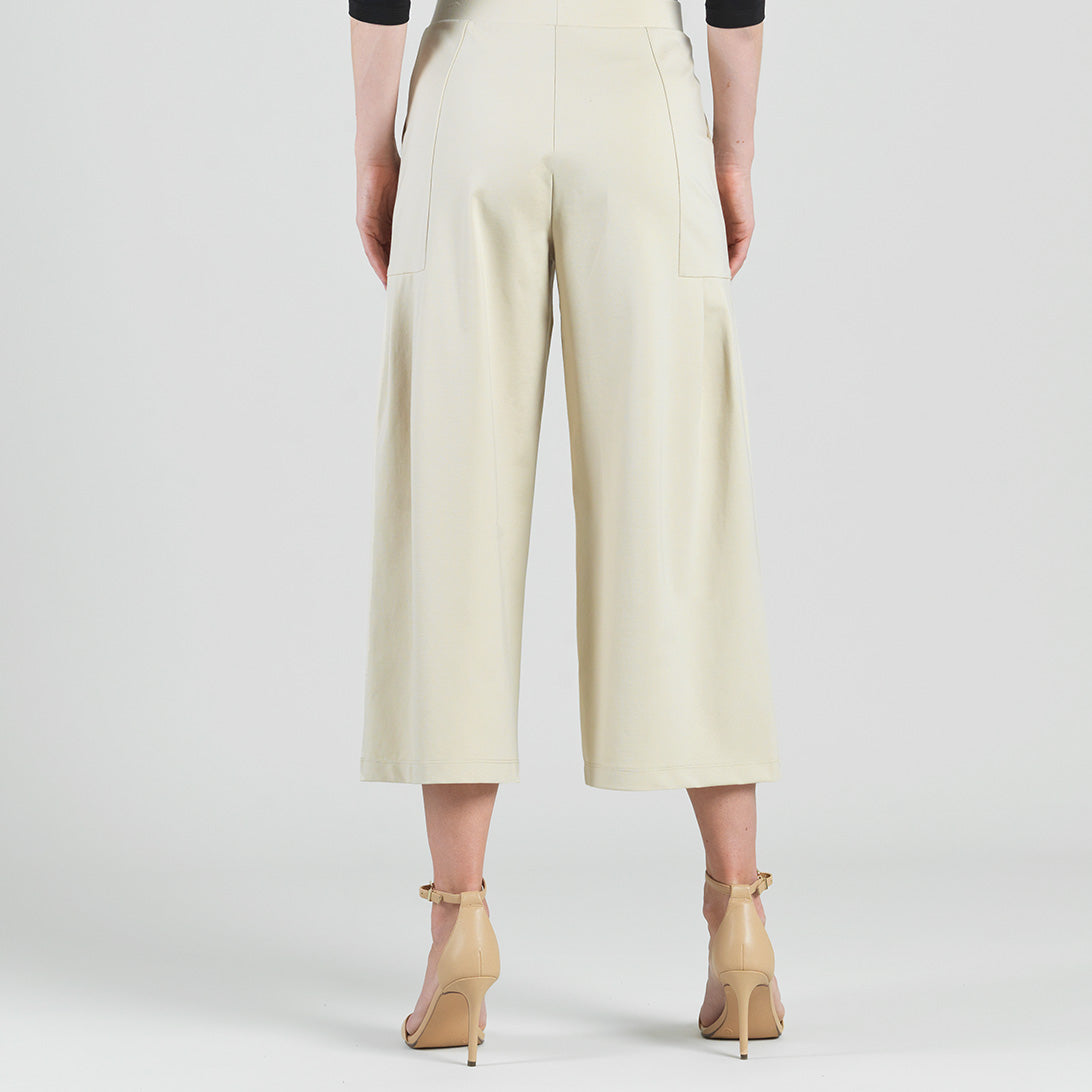 Our Rayon-Ponte Knit Pleated Gaucho Pocket Pant combines the best of both worlds! A truly versatile pant that works for both warm and cool climates! Featuring a loose-fitting wide-leg cropped silhouette, 1.75” pull-on elastic waistband, and side pockets with gorgeous front and back pleated details, designed to naturally flow against the body. Our Khaki shade is a lighter, neutral color with creamy-beige undertones A new, unique fabric that strikes the perfect balance of softness, durability, and stretch. Designed with the smooth breathability of rayon, and the strength and resilience of ponte, this midweight fabric withstands everyday wear and maintains its shape over time. Though it is a thicker fabric, it provides ease of movement and flexibility with a translucent, semi-structured finish. Carefree Travel Fabric – Soft Rayon-Ponte Knit A substantial midweight fabric, with a smooth semi-structured finish and excellent stretch capabilities. This long-lasting fabric retains its softness and shape wash after wash, is easy to care for with great absorbent properties, and ensures insulation that offers both comfort and breathability.1.75″ Elastic Waistband Side Pockets Wrinkle Free Travel Friendly Midweight Soft, Semi-Structured Fabric