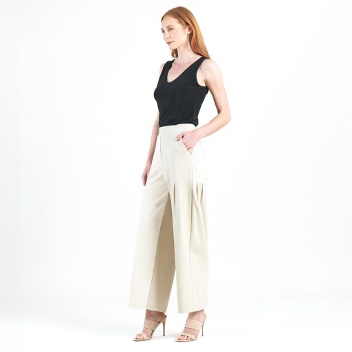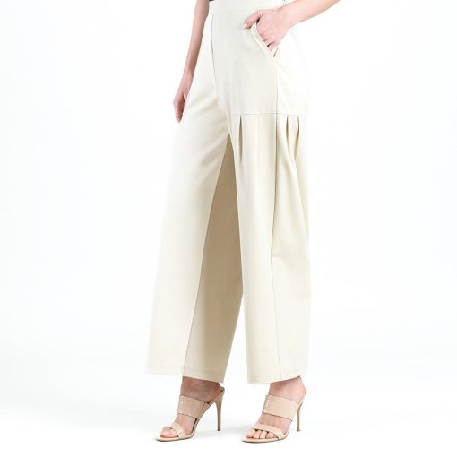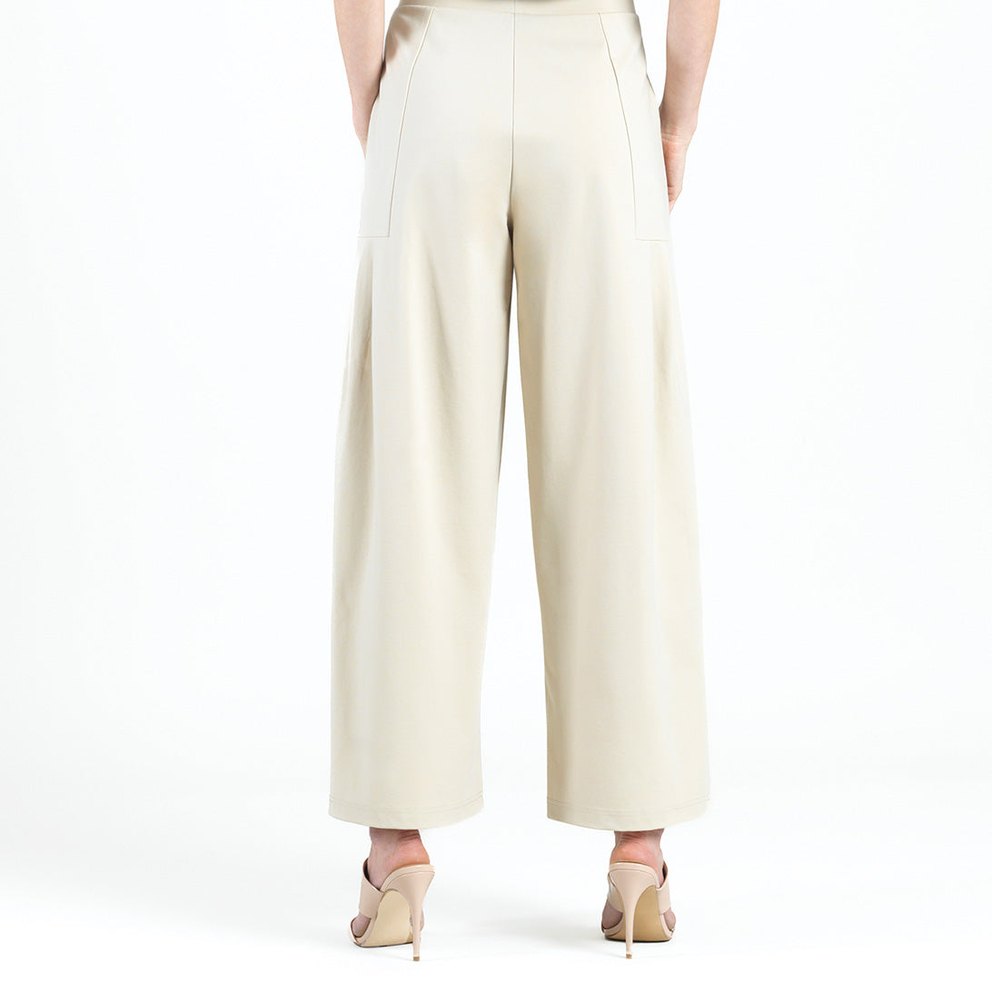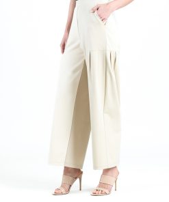 Clara Sunwoo Women’s Rayon-ponte Knit – Pleated Wide Leg Pocket Pant – Khaki | Khaki