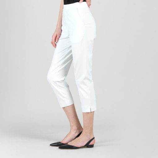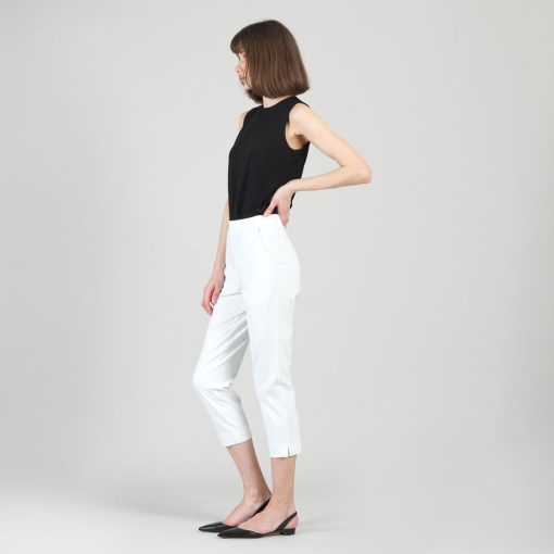 Our Rayon-Ponte Knit Pull-On Capri combines the best of both worlds! A truly versatile pant that works for both warm and cool climates! Features a 1.5” pull-on elastic waistband, side pockets, and a cropped straight leg calf-length hem with a small 1.5″ side vent for a cut that provides a slimming leg silhouette.A new, unique fabric that strikes the perfect balance of softness, durability, and stretch. Designed with the smooth breathability of rayon, and the strength and resilience of ponte, this midweight fabric withstands everyday wear and maintains its shape over time. Though it is a thicker fabric, it provides ease of movement and flexibility with a translucent, semi-structured finish. Carefree Travel Fabric – Soft Rayon-Ponte Knit A substantial midweight fabric, with a smooth semi-structured finish and excellent stretch capabilities. This long-lasting fabric retains its softness and shape wash after wash, is easy to care for with great absorbent properties, and ensures insulation that offers both comfort and breathability.1.5″ Elastic Waistband Side Pockets Wrinkle Free Travel Friendly Midweight Soft, Semi-Structured Fabric