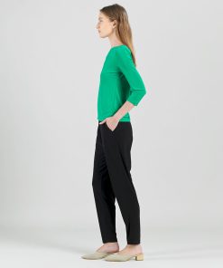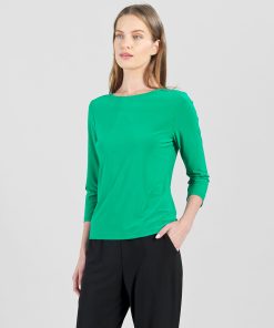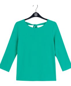 Our Reversible Back Tie Top is a basic silhouette with feminine features! Featuring a round neckline, 3/4 length sleeves, a straight hemline, and a reversible charming back tie detail. ♥ Can also be worn with the back tie in the front for an alternative neckline! Our Emerald shade is a vibrant, mid-tone color, with kelly green undertones.Carefree Travel Fabric – Soft Silky Knit Our signature poly blend fibers offer luxurious softness with lightweight, wrinkle-free comfort. This easy-care fabric is quick drying and cooler than linen or cotton, making it perfect for on-the-go wear.Reversible Back Tie Detail Wrinkle Free Travel Friendly Ultra Lightweight Soft Knit Fabric Breathable Jersey-Like Feel
