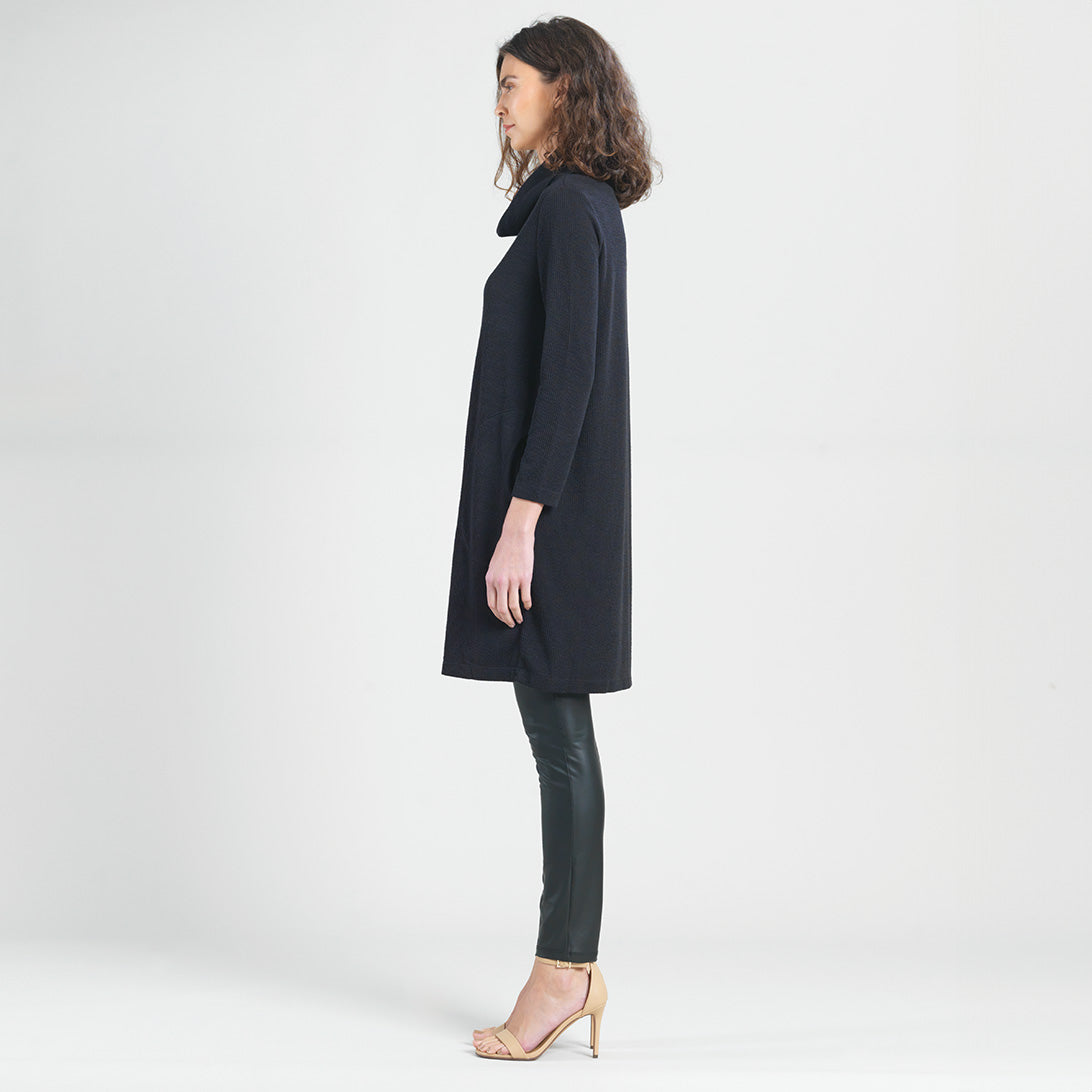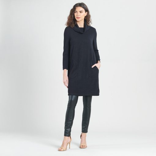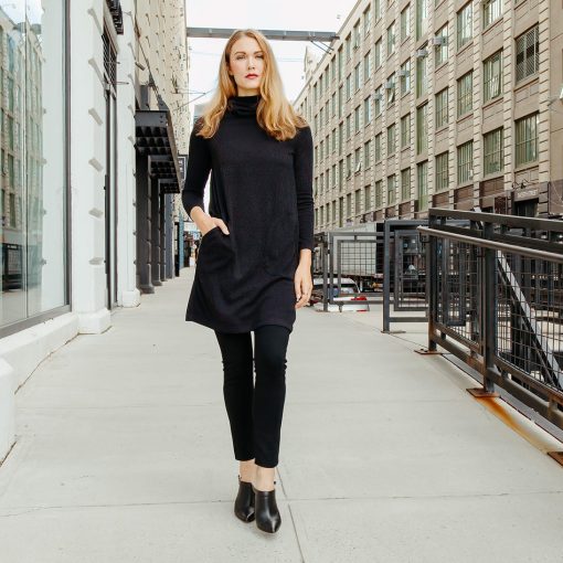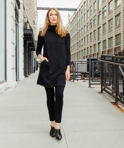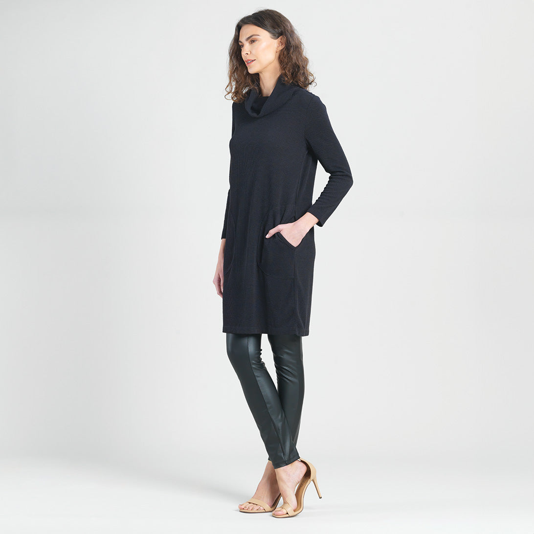 Lookin’ good and stayin’ warm has never been so easy! Our Ribbed Cowl Turtleneck Tunic Sweater Dress is all you need to take your style up a notch this season. It’s got all the comfort and convenience of a tunic, with the added bonus of a cozy turtleneck, half-circle pockets, and long sleeves, so you can strut your stuff with confidence. Style it with slim-fitting pants or leggings for a chic and sophisticated look. Lightweight Ribbed Sweater KnitOur lightweight ribbed sweater knit is crafted with a luxurious blend of Poly-Blend fibers to create a soft knit that is ideal for layering and everyday comfort. The fibers make it easy to care for, while its lightweight construction and breathability make it a perfect traveling companion. Travel Friendly Ribbed Texture Detail Lightweight Sweater Knit