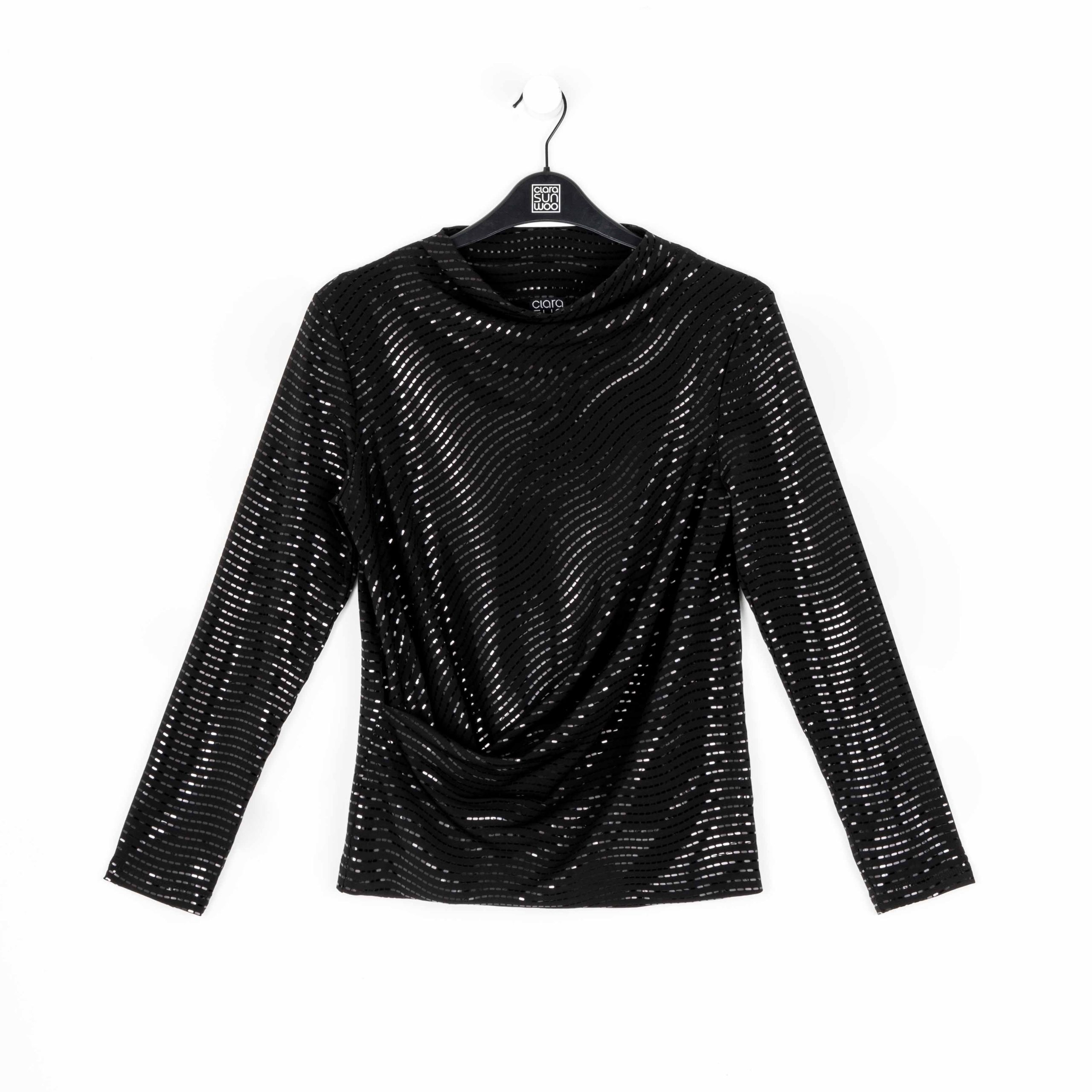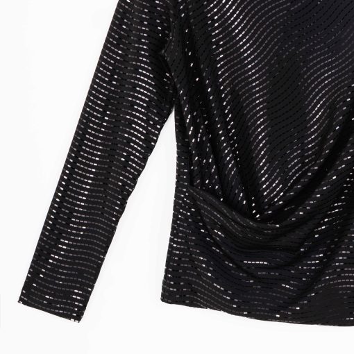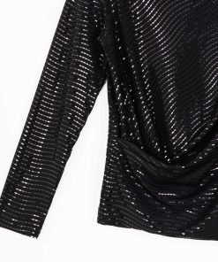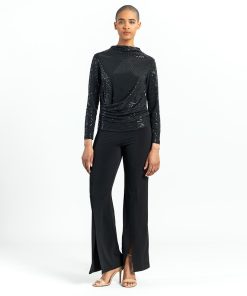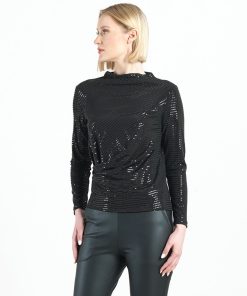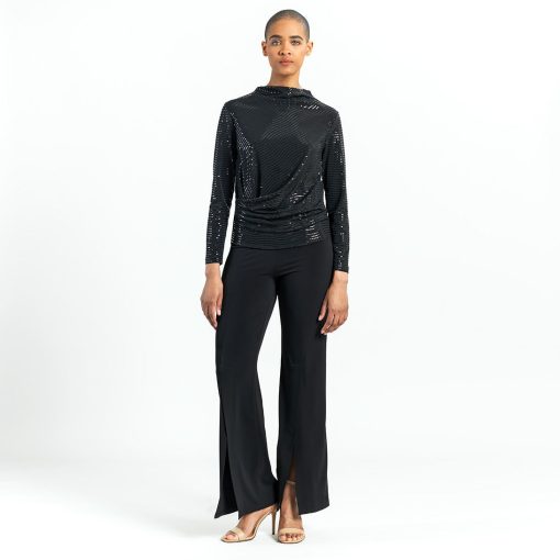 No matter where you go, you can assure you’ll shine bright in our Shimmer Embellished High Boat Neck Side Draped Top! Featuring a draped, high boat neckline, long sleeves, and a beautiful, side-draped detail that softly cascades from the left to lower-right bodice and a straight hemline.A gorgeous shimmer fabric, with an array of horizontal reflective flat-sequin embellishments. Carefree Travel Fabric – Soft Silky Knit w/ Reflective Embellishment Our signature poly blend fibers offer luxurious softness with lightweight, wrinkle-free comfort. This easy-care fabric is quick drying and cooler than linen or cotton, making it perfect for on-the-go wear.Wrinkle Free Travel Friendly Ultra Lightweight Soft Knit Fabric Breathable Jersey-Like Feel Reflective Shimmer Embellishment