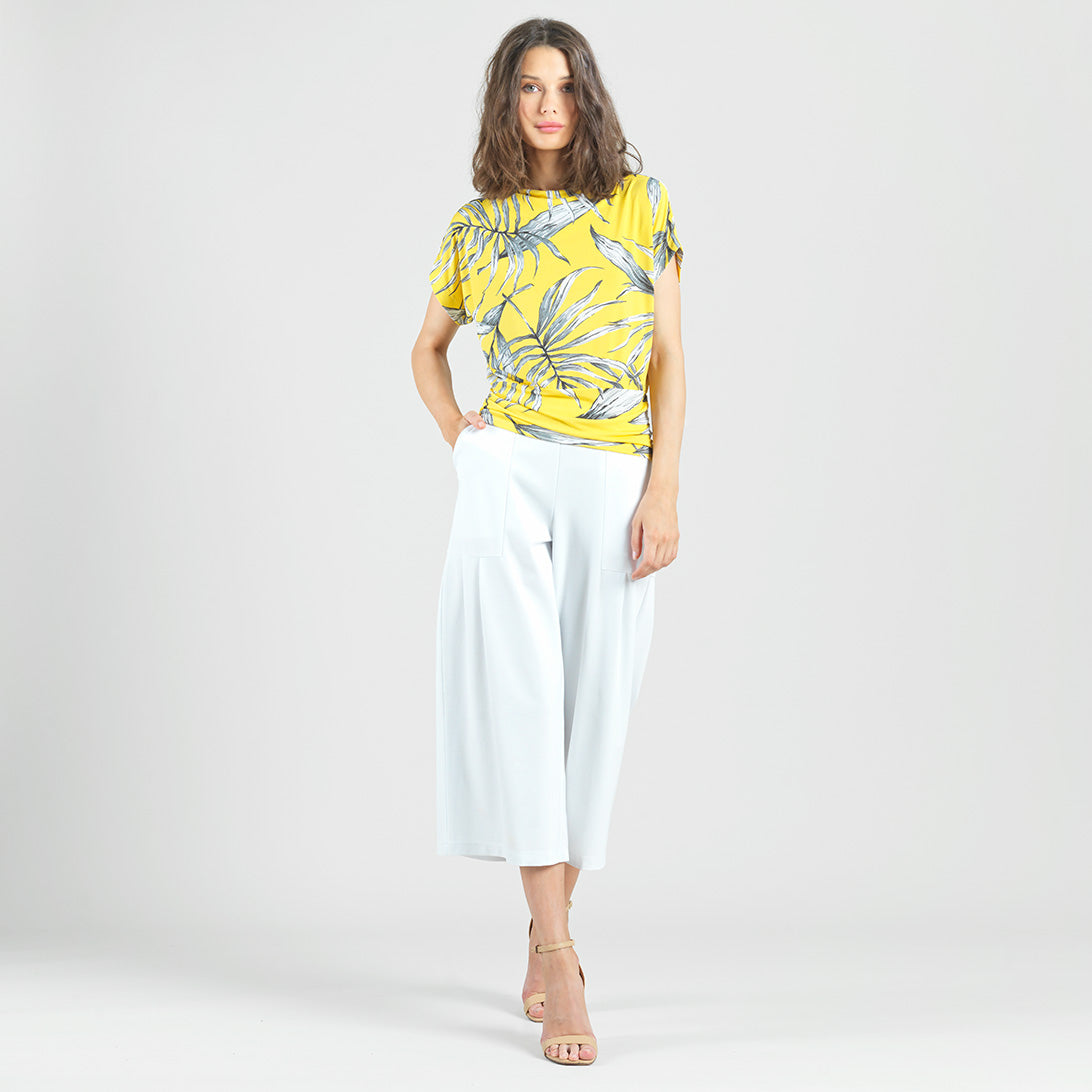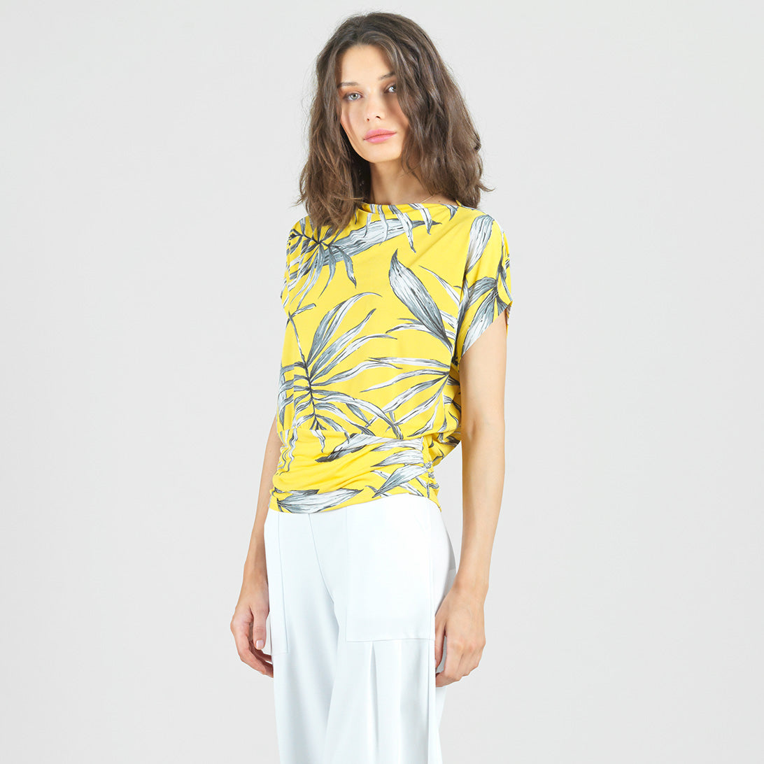 Shine bright as you bask in our Sunlit Palm Side Ruched Boat Neck Top! Featuring a boat neckline, short dolman sleeves, and a waist-hugging side ruched hemline, that displays an elegant blouson silhouette. A timeless print displaying a traditional damask pattern of symmetric medallions reimagined in soft watercolor shades of pale coral-orange, tomato red, and white that blend to create an artistic gradient. ♥ Each piece is a unique, one-of-a-kind print and print placement will vary.Carefree Travel Fabric – Soft Silky Knit Our signature poly blend fibers offer luxurious softness with lightweight, wrinkle-free comfort. This easy-care fabric is quick drying and cooler than linen or cotton, making it perfect for on-the-go wear.Side Ruched Hemline Wrinkle Free Travel Friendly Ultra Lightweight Soft Knit Fabric Breathable Jersey-Like Feel