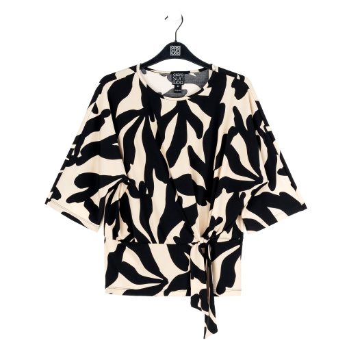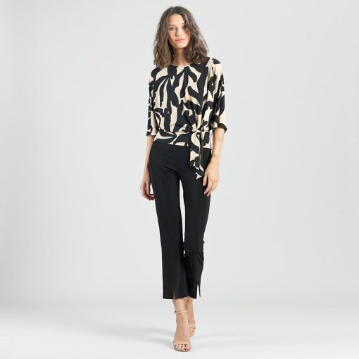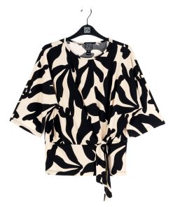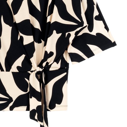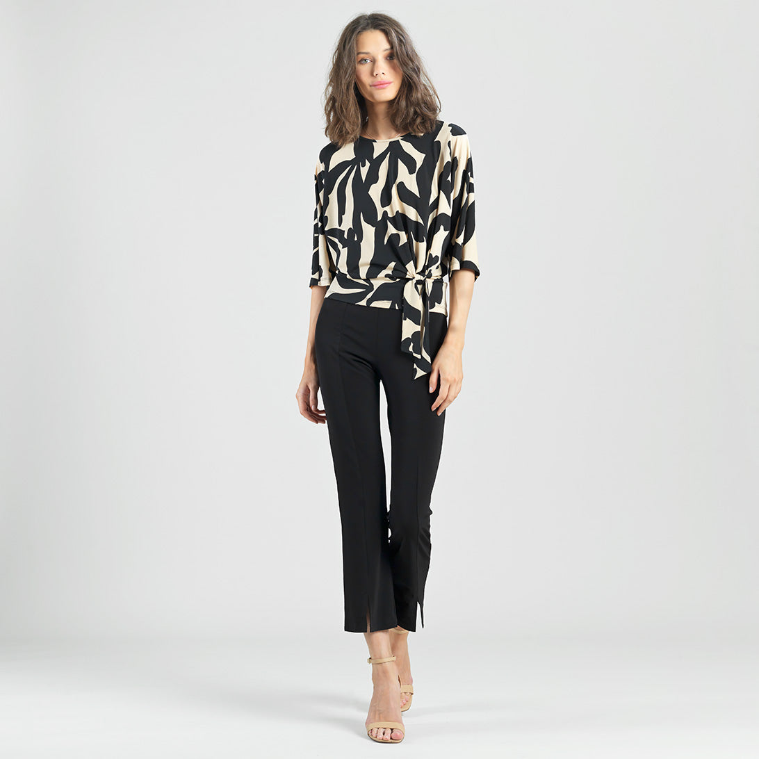 Cast a shadow of refined style with a contemporary edge in our Leaf Shadow Side Tie Top will have you looking chic from all angles! Featuring a high round neckline, elbow-length sleeves, and side tie detail, with a waist-hugging hemline, that displays an elegant blouson silhouette. An abstract print displaying bold, black leaf shapes against a creamy beige background that gives off the contrast of shadows for a clean, modern aesthetic. ♥ Each piece is a unique, one-of-a-kind print and print placement will vary. Carefree Travel Fabric – Soft Silky Knit Our signature poly blend fibers offer luxurious softness with lightweight, wrinkle-free comfort. This easy-care fabric is quick drying and cooler than linen or cotton, making it perfect for on-the-go wear.Wrinkle Free Travel Friendly Ultra Lightweight Soft Knit Fabric Breathable Jersey-Like Feel