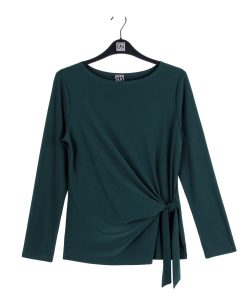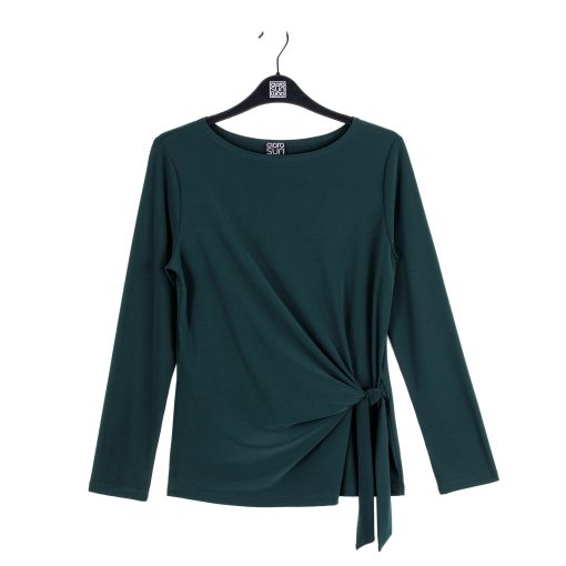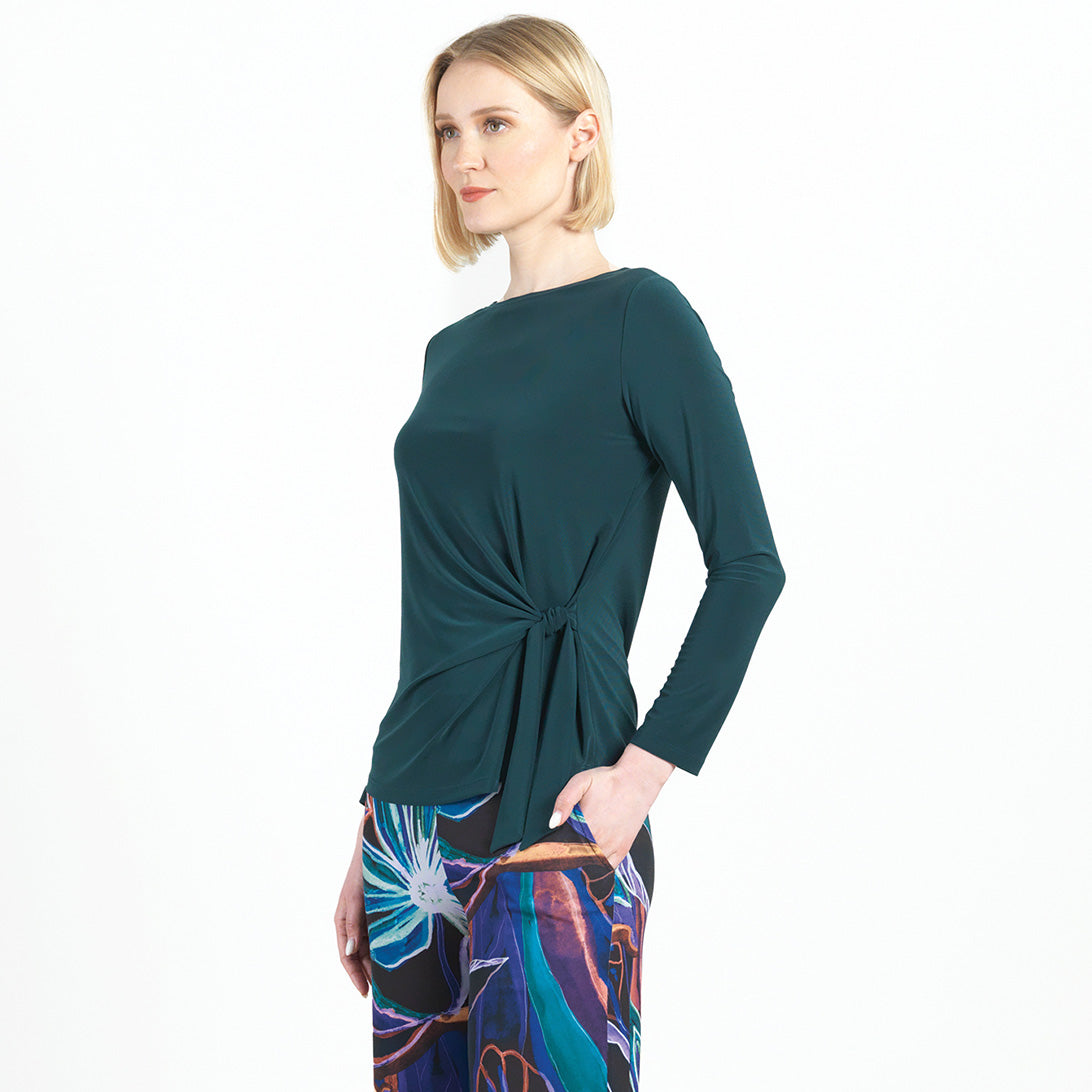 Our Side Tie Waist Top is a modern wardrobe essential, you’ll reach for time and time again! This stunning top features a wide round neckline, long sleeves, and a side-tie waist detail with a straight hip hemline. Our Hunter Green shade is a rich, deep earthy-green color comprised of both cool and warm undertones. Carefree Travel Fabric – Soft Silky Knit Our signature poly blend fibers offer luxurious softness with lightweight, wrinkle-free comfort. This easy-care fabric is quick drying and cooler than linen or cotton, making it perfect for on-the-go wear.Wrinkle Free Travel Friendly Ultra Lightweight Soft Knit Fabric Breathable Jersey-Like Feel