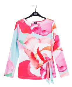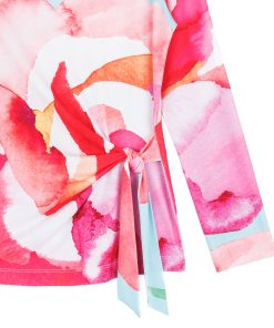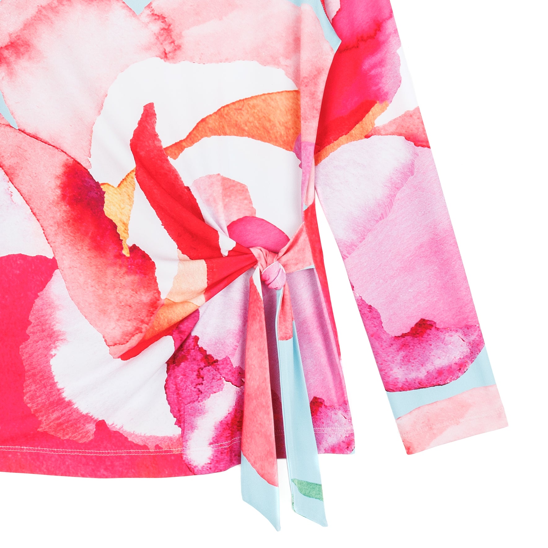 No water is required to bloom in style when you wear our Petal Watercolor Side Tie Waist Top! This stunning top features a wide round neckline, long sleeves, and a side-tie waist detail with a straight hip hemline. A charming print comprised of blending oversized petals in shades of red, pink, turquoise, orange, green, and white with subtle maroon lines that melt into each other to create a dreamy watercolor effect. ♥ Each piece is a unique, one-of-a-kind print and print placement will vary. Carefree Travel Fabric – Soft Silky Knit Our signature poly blend fibers offer luxurious softness with lightweight, wrinkle-free comfort. This easy-care fabric is quick drying and cooler than linen or cotton, making it perfect for on-the-go wear.Wrinkle Free Travel Friendly Ultra Lightweight Soft Knit Fabric Breathable Jersey-Like Feel