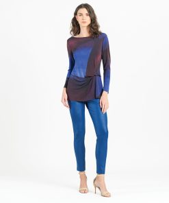 Elevate your wardrobe with the art-inspired Watercolor Side Twist Tunic! Designed with a wide round neckline, long sleeves, and a chic side twist detail, this tunic is all about effortless elegance. The straight hemline gives it a clean, modern look that’s easy to style. Immerse yourself in a palette of rich, deep colors—purple, eggplant, navy, cobalt, and black—blending beautifully to mimic the delicate strokes of a watercolor painting. Each tunic is a one-of-a-kind creation, with unique print placements that make each piece special. Hurry, limited stock available! This tunic won’t be restocked, so grab yours before it’s too late!Carefree Travel Fabric – Soft Silky Knit Our signature poly blend fibers offer luxurious softness with lightweight, wrinkle-free comfort. This easy-care fabric is quick drying and cooler than linen or cotton, making it perfect for on-the-go wear.Wrinkle Free Travel Friendly Ultra Lightweight Soft Knit Fabric Breathable Jersey-Like Feel One-of-a-kind print placement ensures every top is different