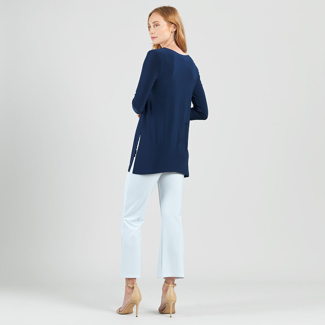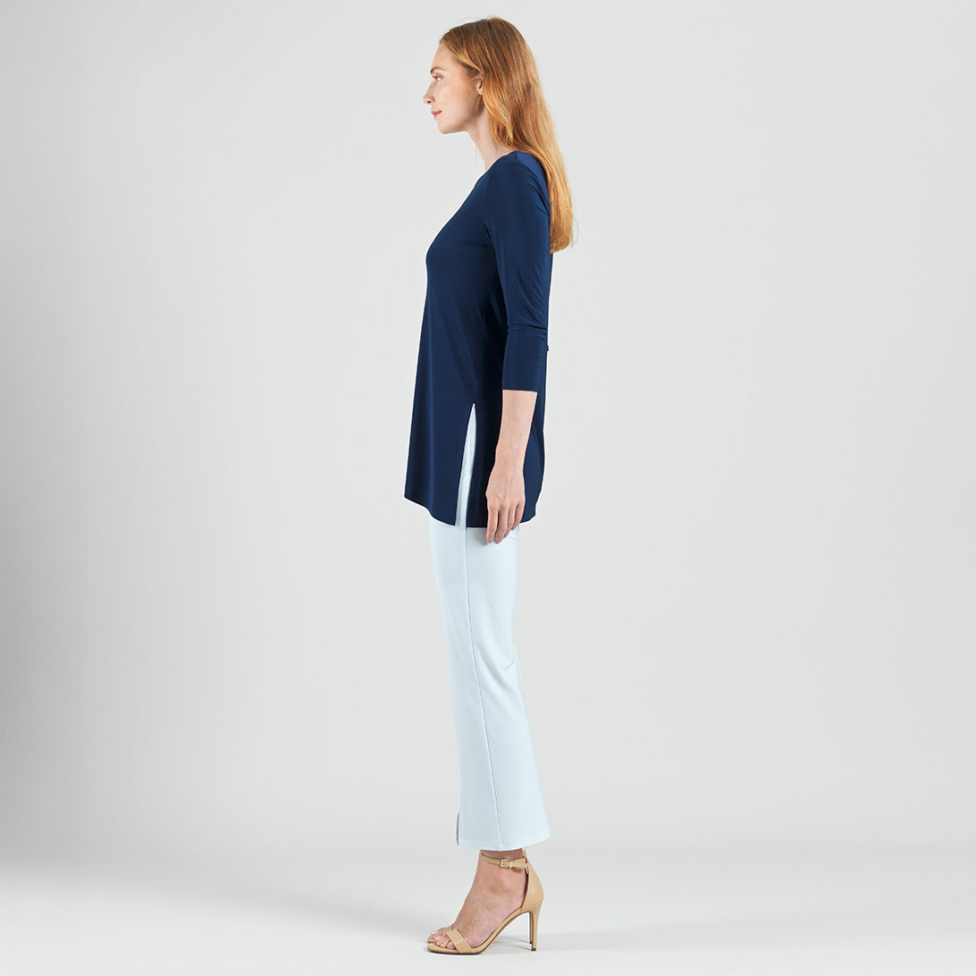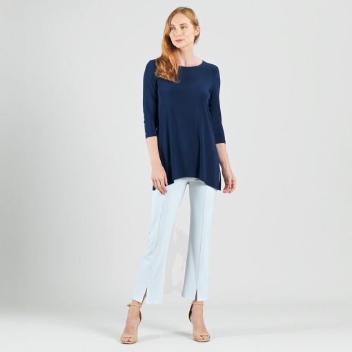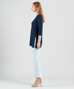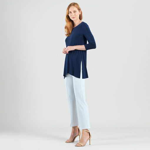 Modernize your basic pieces with our Side Vent Kerchief Hem Tunic! This tunic features a round neckline, 3/4 length sleeves, and a kerchief hemline with dual side vents that create a flattering silhouette. Carefree Travel Fabric – Soft Silky Knit Our signature poly blend fibers offer luxurious softness with lightweight, wrinkle-free comfort. This easy-care fabric is quick drying and cooler than linen or cotton, making it perfect for on-the-go wear.Wrinkle Free Travel Friendly Ultra Lightweight Soft Knit Fabric Breathable Jersey-Like Feel