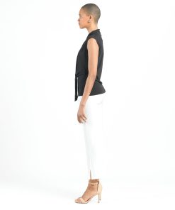Our Sleeveless Center Front Tie Top is a minimalist’s dream! This flattering sleeveless top features a v-bottle neckline, a vertical neck-to-hem center seam, and a front-center waist tie that creates a beautiful draped effect that accentuates your natural figure. Carefree Travel Fabric – Soft Silky Knit Our signature poly blend fibers offer luxurious softness with lightweight, wrinkle-free comfort. This easy-care fabric is quick drying and cooler than linen or cotton, making it perfect for on-the-go wear.Wrinkle Free Travel Friendly Ultra Lightweight Soft Knit Fabric Breathable Jersey-Like Feel