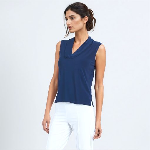 Clara Sunwoo Women’s Sleeveless Draped Cowl Neck Top – Navy – Final Sale! | Navy