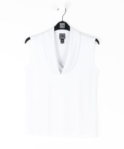 Our Sleeveless Draped Cowl Neck Top combines minimalist fashion with a modern twist! This sleeveless, bra-friendly top features a draped cowl neckline, bust dart details, and a straight hemline with 3″ side vents.Carefree Travel Fabric – Soft Silky Knit Our signature poly blend fibers offer luxurious softness with lightweight, wrinkle-free comfort. This easy-care fabric is quick drying and cooler than linen or cotton, making it perfect for on-the-go wear.Wrinkle Free Travel Friendly Ultra Lightweight Soft Knit Fabric Breathable Jersey-Like Feel