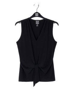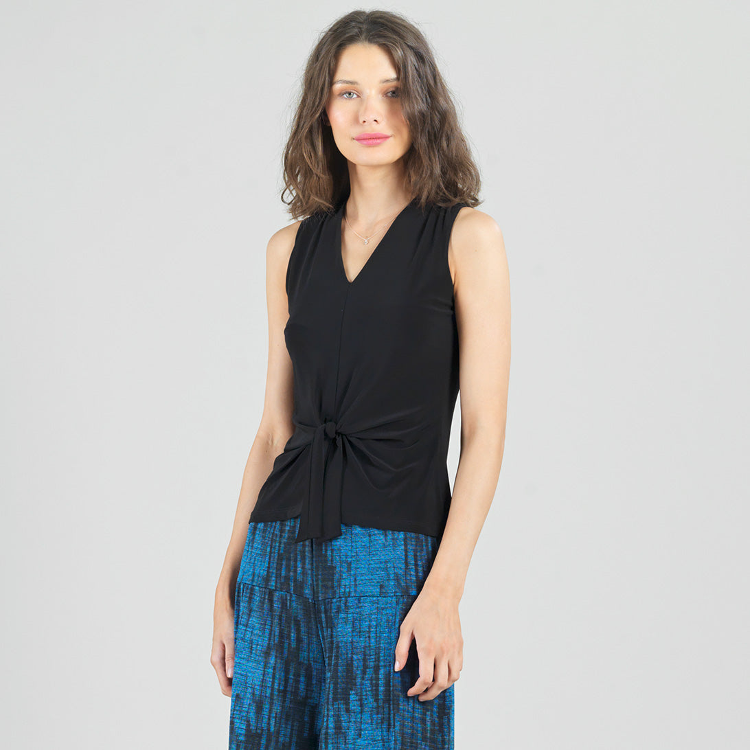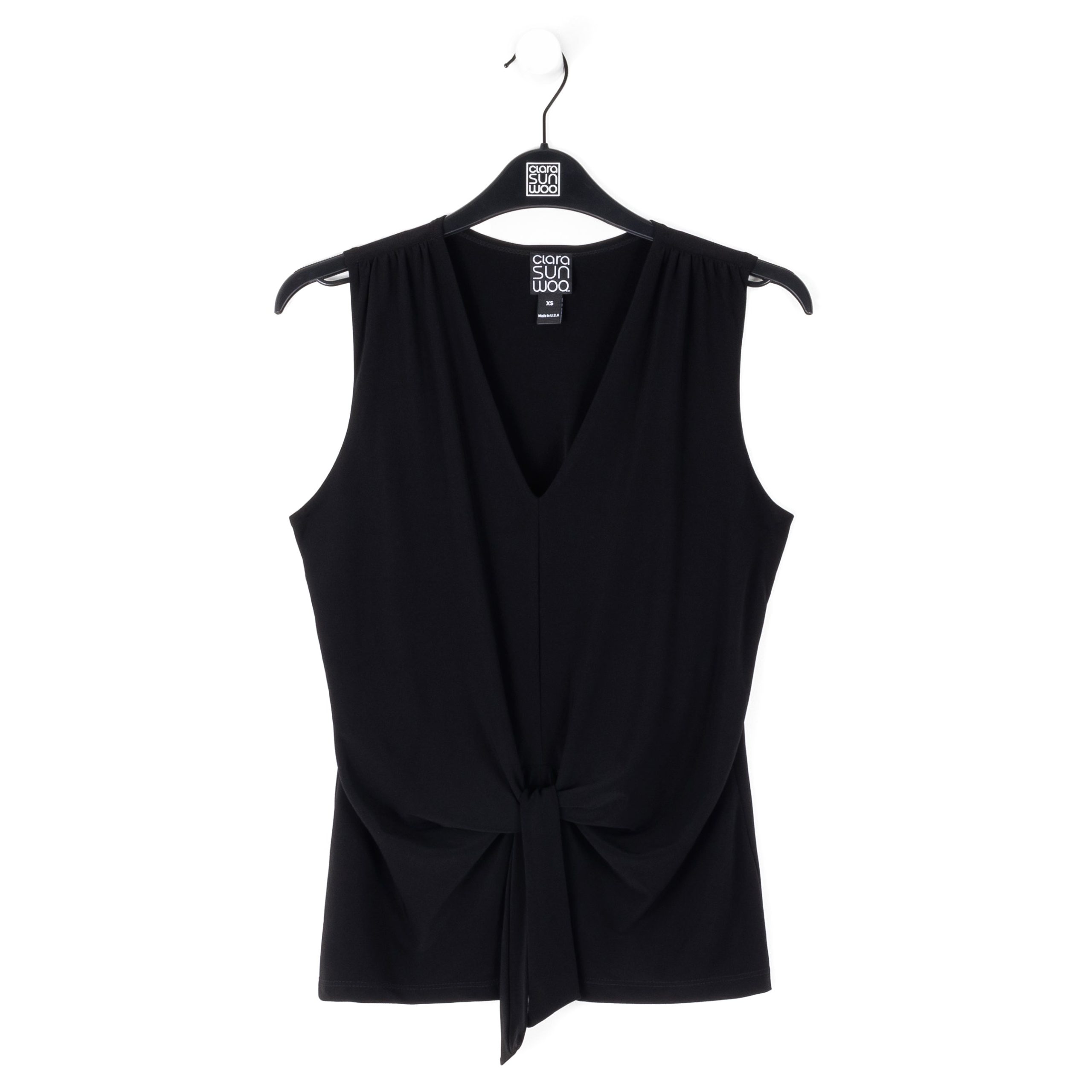 Clara Sunwoo Women’s Sleeveless V-neck Center Front Tie Top – Black | Black