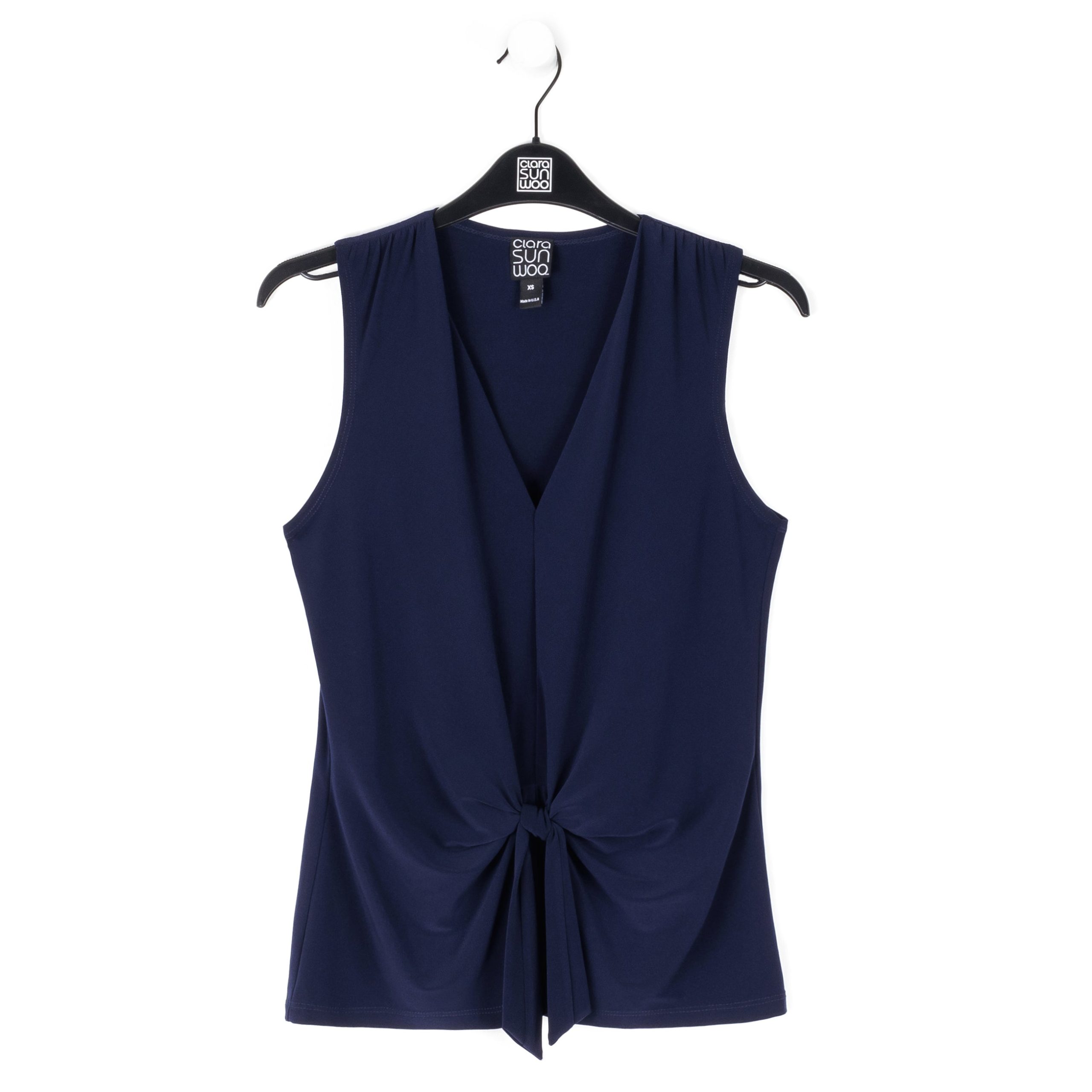 Clara Sunwoo Women’s Sleeveless V-neck Center Front Tie Top – Navy | Navy