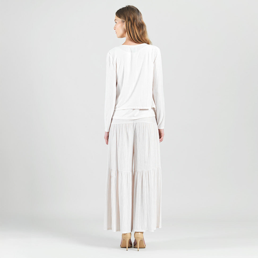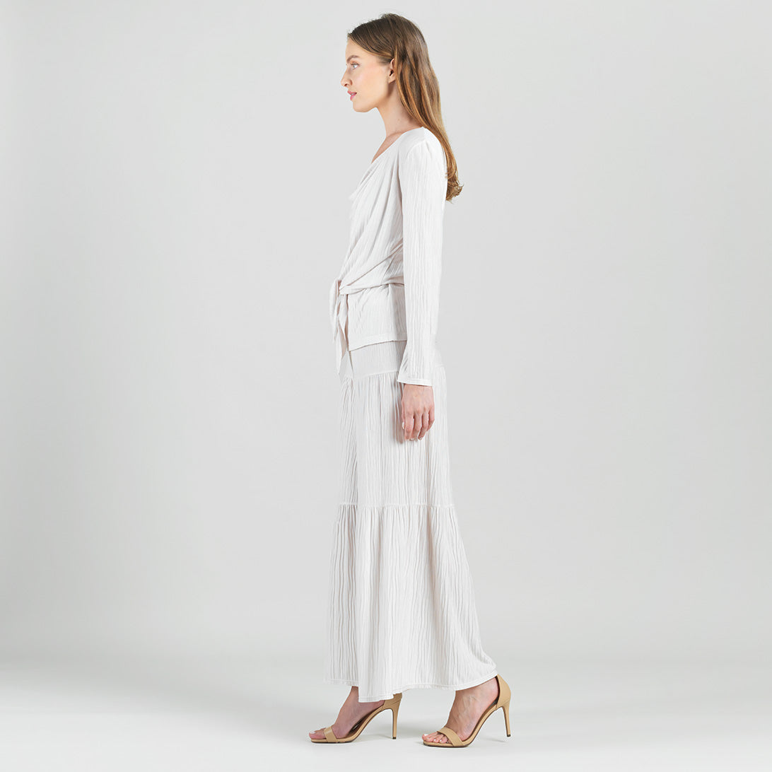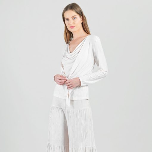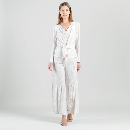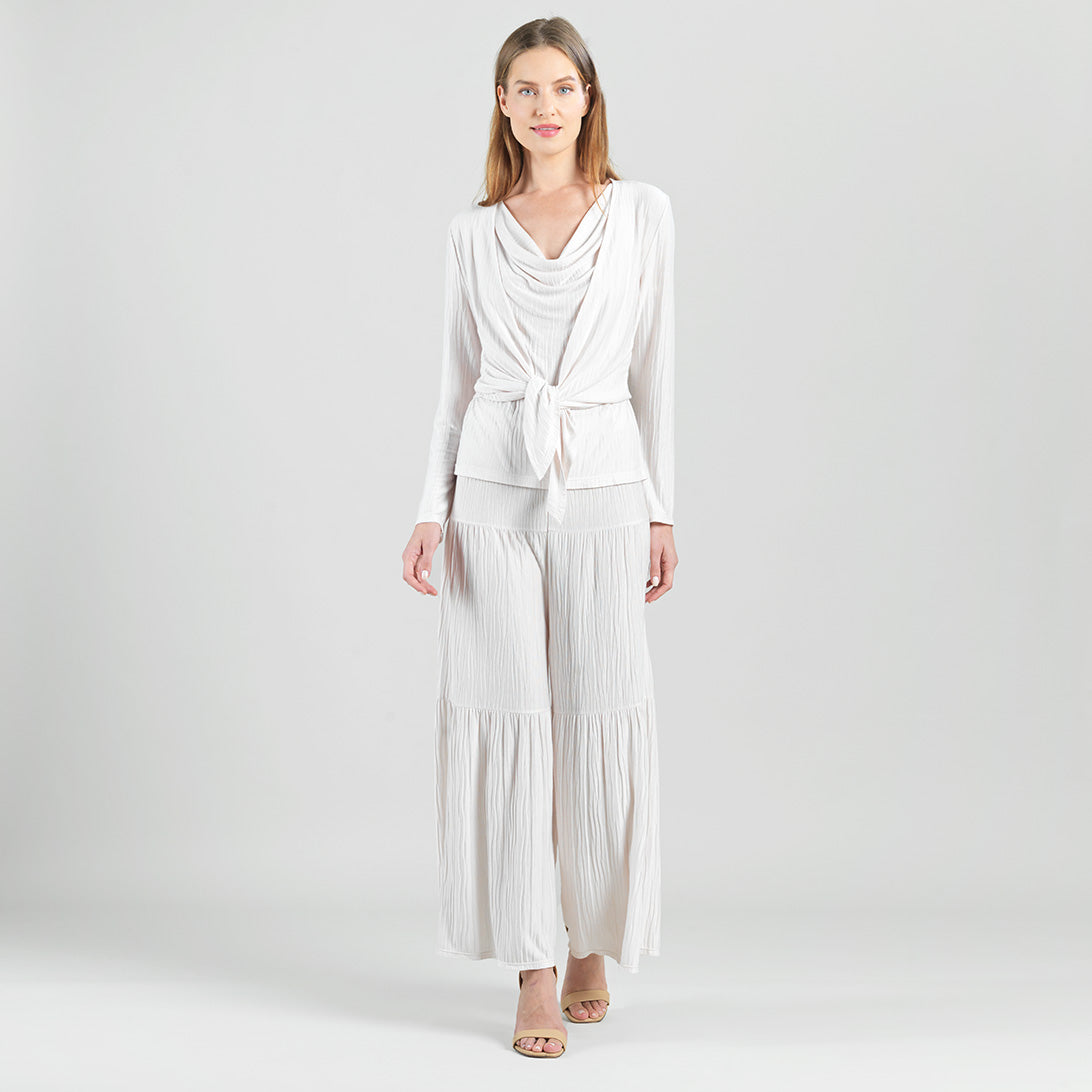 Our Soft Pleat Cardigan & Tank Twinset is great apart but better together! This beautiful 2-piece set consists of our Tie Front Cardigan that features 3/4 length sleeves, vertical pleats, and an optional tie front design which is accompanied by our Draped Cowl Tank, which is designed with bra-friendly straps, a flowing draped cowl neck, horizontal pleats, and a straight hemline. Our pleated Ivory shade is a true ivory color with a light, creamy-beige undertone, and a radiant-matte finish. A new, luxurious ethereal fabric, inspired by elegant plissé fibers. Designed with a distinct, crinkled-like feel, that is rich in texture while retaining its lightweight shape. It is thin and delicate, allowing it to drape beautifully, and has a radiant-matte finish. Carefree Travel Fabric – Soft Pleated Plissé Knit Our signature rayon-poly blend fabric provides a finish that is rich in texture while being soft, lightweight, and breathable with quick-drying properties. This delicate fabric offers refined durability with crinkled dimension for visual interest. Perfect for warm or transitional weather, you can pack it up and go with ease!Wrinkle Free Travel Friendly Ultra Lightweight Soft Pleated Fabric Crinkled Plissé Texture