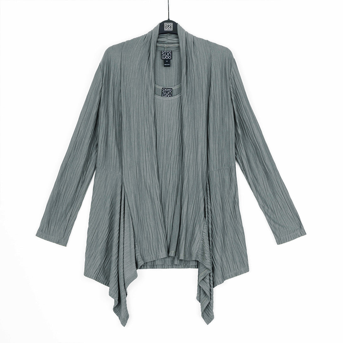 Clara Sunwoo Women’s Soft Pleat Knit – Cardigan & Tank Twinset – Olive – Final Sale! | Olive