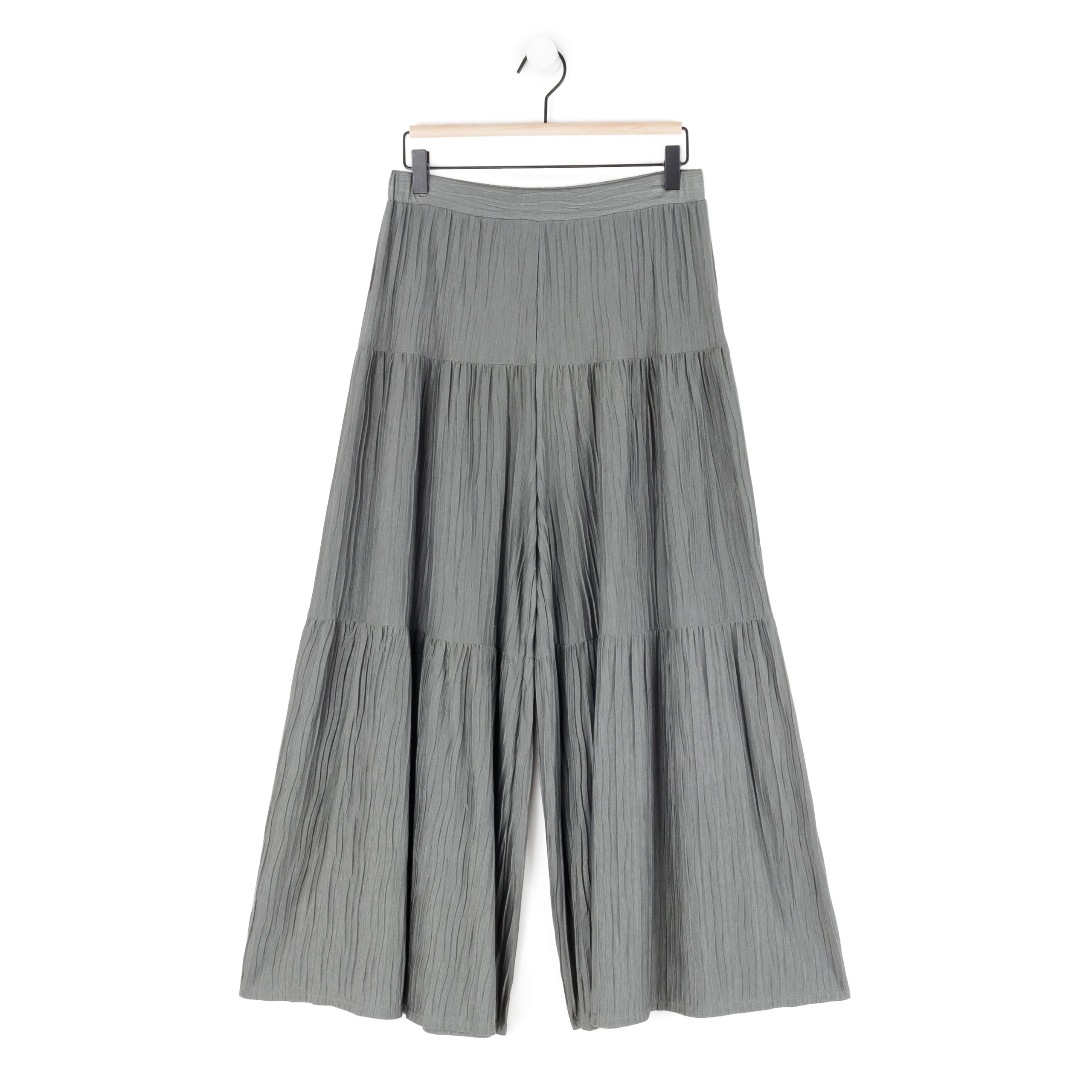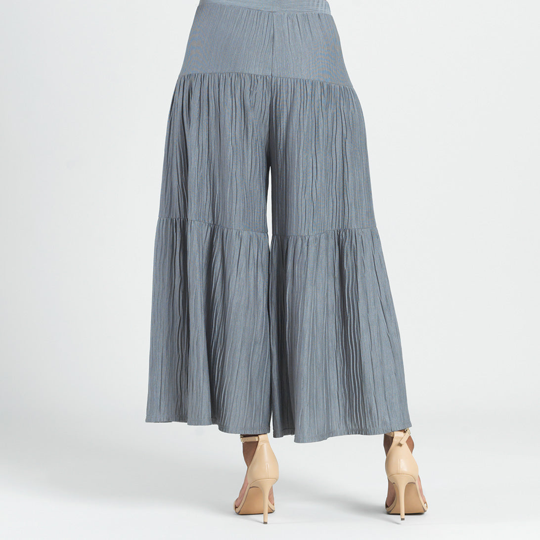 If you’re looking for an item that’s as elegant as it is effortless, our Soft Pleat Knit Tiered Skirt-Pant is sure to take your fashion game to a new level! This one-of-a-kind style features a 1.25” pull-on elastic waistband, an ultra wide-leg silhouette that visually looks like a skirt, and provides beautiful, fluid movement with double-tier details which create a gorgeous drape that naturally flows against the body. Our pleated Olive shade is a grey-toned color with cool sage undertones and a radiant-matte finish. A new, luxurious ethereal fabric, inspired by elegant plissé fibers. Designed with a distinct, crinkled-like feel, that is rich in texture while retaining its lightweight shape. It is thin and delicate, allowing it to drape beautifully, and has a radiant-matte finish.Carefree Travel Fabric – Soft Pleated Plissé Knit Our signature rayon-poly blend fabric provides a finish that is rich in texture while being soft, lightweight, and breathable with quick-drying properties. This delicate fabric offers refined durability with crinkled dimension for visual interest. Perfect for warm or transitional weather, you can pack it up and go with ease!1.25″ Elastic Waistband 23″ Leg Hemline Wrinkle Free Travel Friendly Ultra Lightweight Soft Pleated Fabric Crinkled Plissé Texture