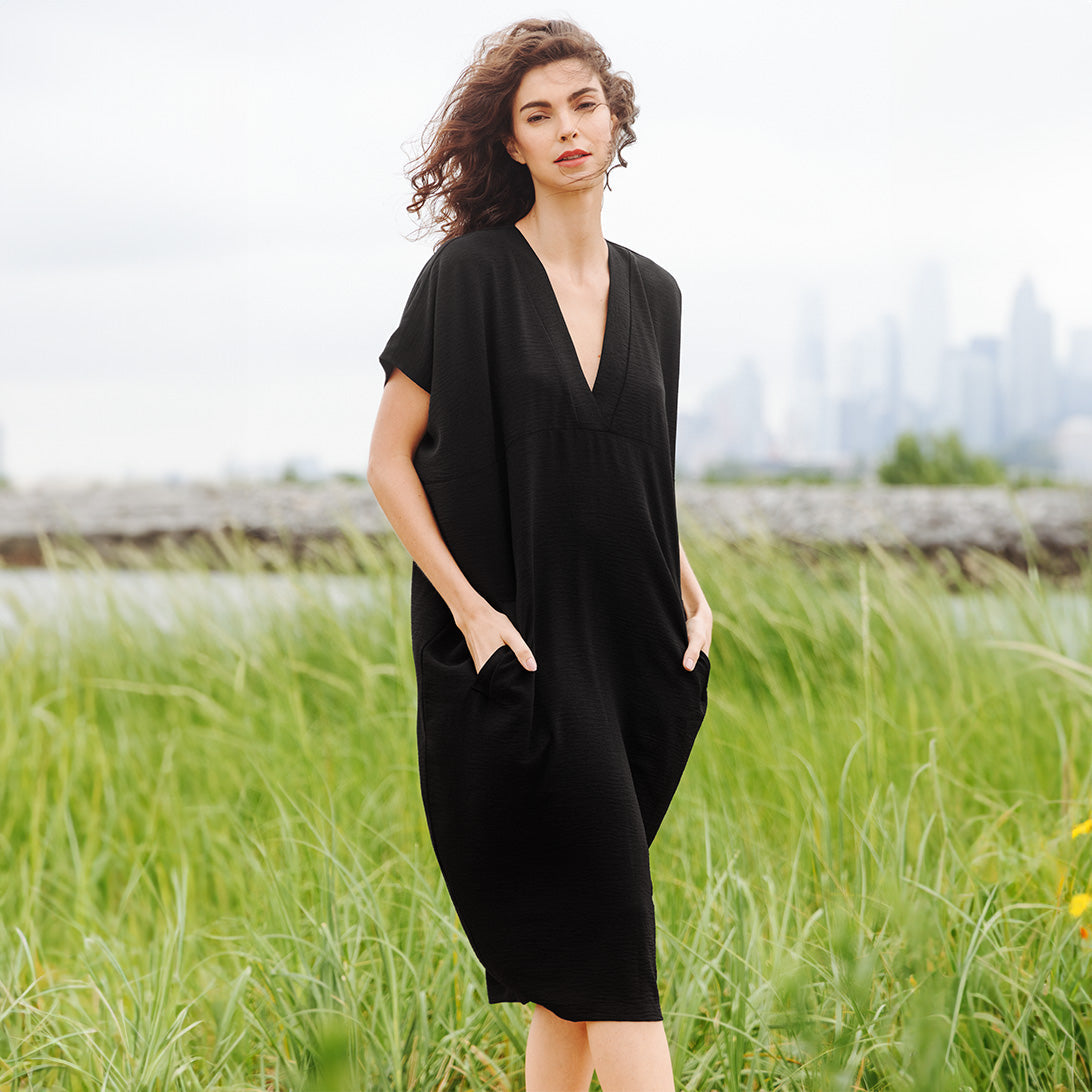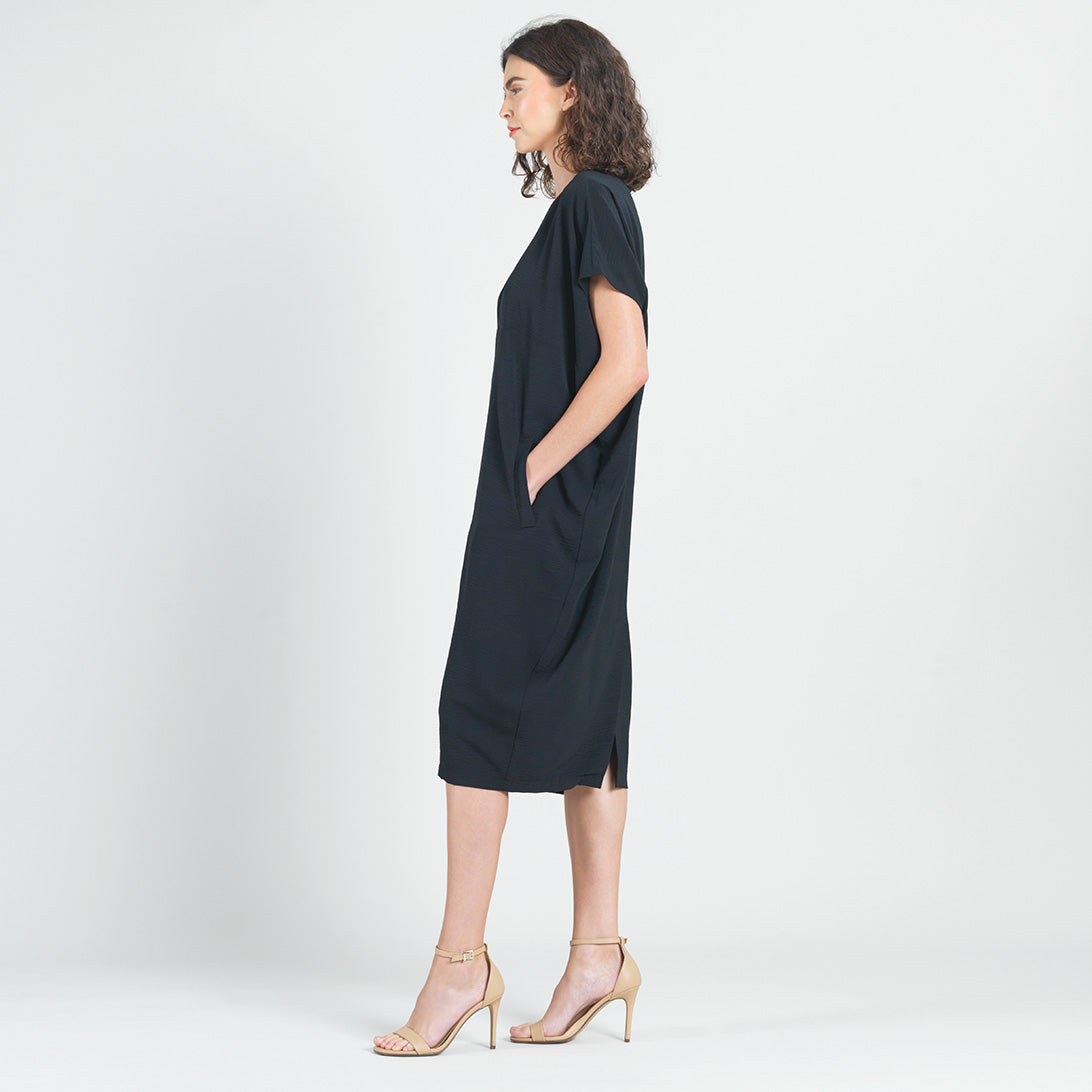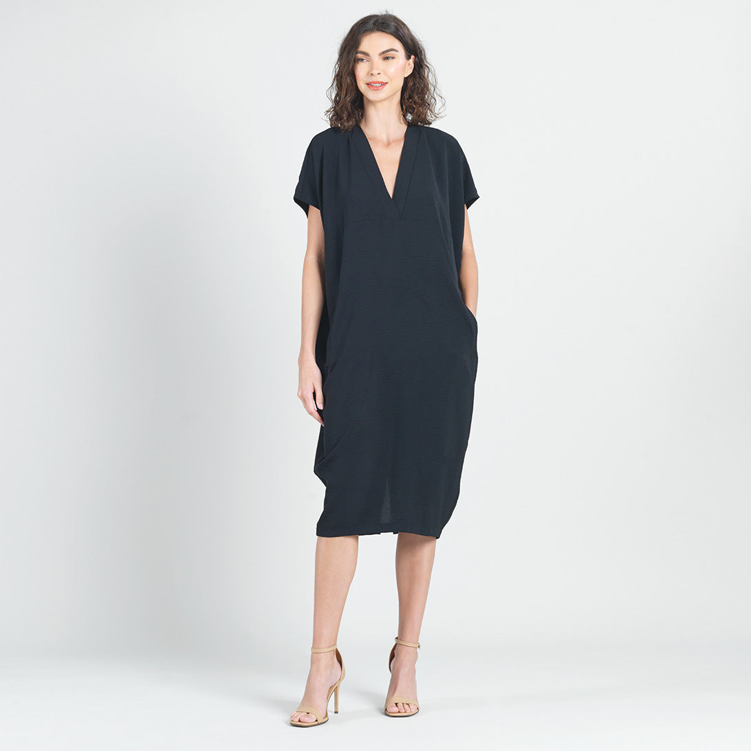 If you’re looking to be the epitome of modern elegance, our Textured Rayon Empire Waist Caftan Pocket Dress is exactly what you need! This stunning dress features a seamed 14″ surplice-style v-neckline, slanted short sleeves, an empire waistline, front side pockets, and a 12″ back hem slit. This caftan-inspired construction provides a beautiful, flowing draped silhouette that gradually narrows in toward the hem, creating a forgiving, yet flattering shape!A new, exclusive-quality matte fabric, inspired by upscale vacation wear. Designed with a soft fluid drape, vintage-like texture, and a light-medium weight finish. It is translucent and durable, allowing it to beautifully retain a luxurious look and eye-catching shape. Carefree Travel Fabric – Soft Textured Rayon Knit Our poly-rayon blend is a substantial light-medium weight fabric, with a soft flowing structure and a crinkle-like texture. This long-lasting fabric is sturdy yet breathable and is easy to maintain. It is thinner than linen, cool to the touch, offers comfortable wear, and is a versatile material so it works for many different occasions!14″ Surplice V-Neckline 12″ Back Hem Slit Vintage-Like Texture Travel Friendly Light-Medium Weight Fabric Breathable and Sturdy Finish