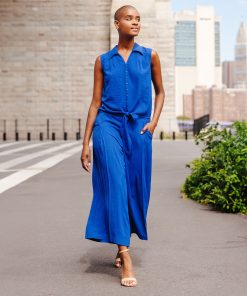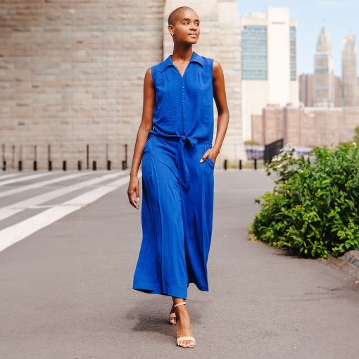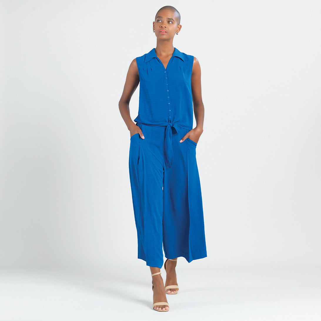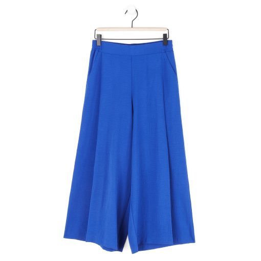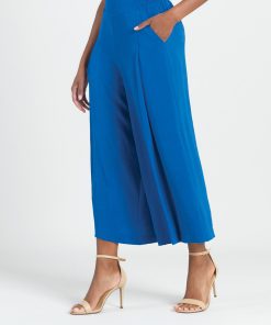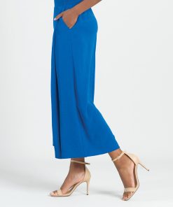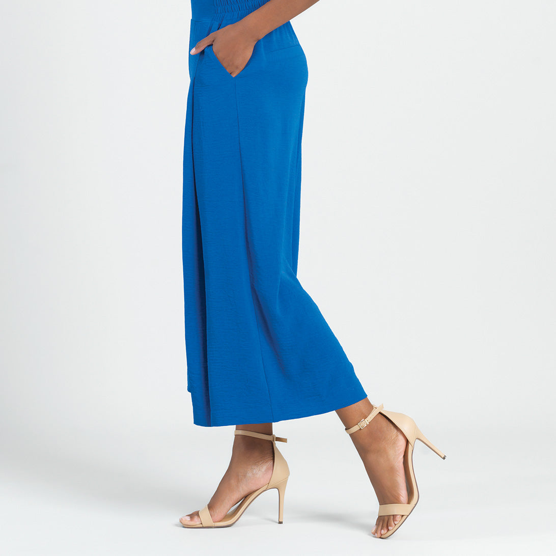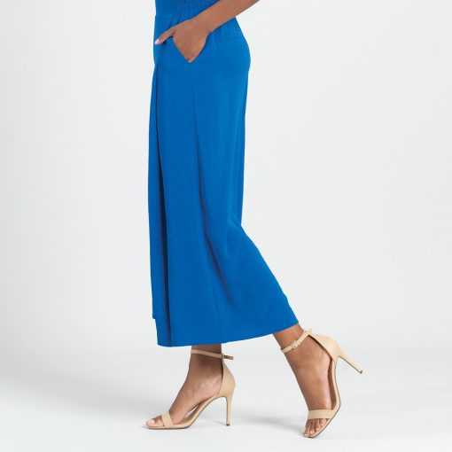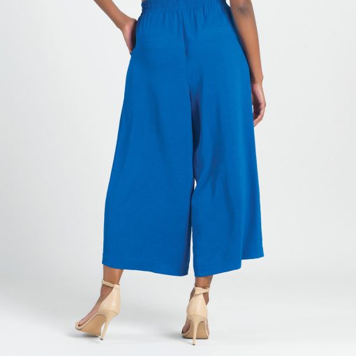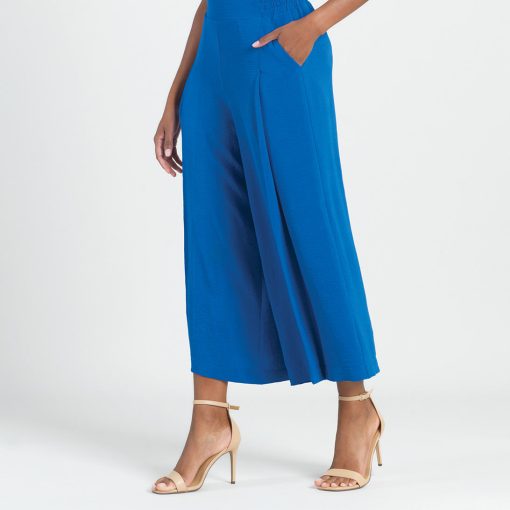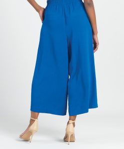 The best things in life are effortless, and our Textured Rayon Side Pocket Culotte Pant is no exception! This style features a 2″ pull-on elastic waistband that has a shirred-back top-stitched finish, standard side pockets, faux back pockets, a wide-leg, cropped hem that is designed to naturally flow against the body, and a vertical dart pleat detail that travels down the center of each leg front, to create a beautiful draped effect that resembles the free-flowing movement of a skirt. Our rayon Cobalt shade is a true royal blue color with deep vivid undertones. A new, exclusive-quality matte fabric, inspired by upscale vacation wear. Designed with a soft fluid drape, vintage-like texture, and a light-medium weight finish. It is translucent and durable, allowing it to beautifully retain a luxurious look and eye-catching shape. Carefree Travel Fabric – Soft Textured Rayon Knit Our poly-rayon blend is a substantial light-medium weight fabric, with a soft flowing structure and a crinkle-like texture. This long-lasting fabric is sturdy yet breathable and is easy to maintain. It is thinner than linen, cool to the touch, offers comfortable wear, and is a versatile material so it works for many different occasions!2″ Elastic Waistband Two Side Pockets Vintage-Like Texture Travel Friendly Light-Medium Weight Fabric Breathable and Sturdy Finish