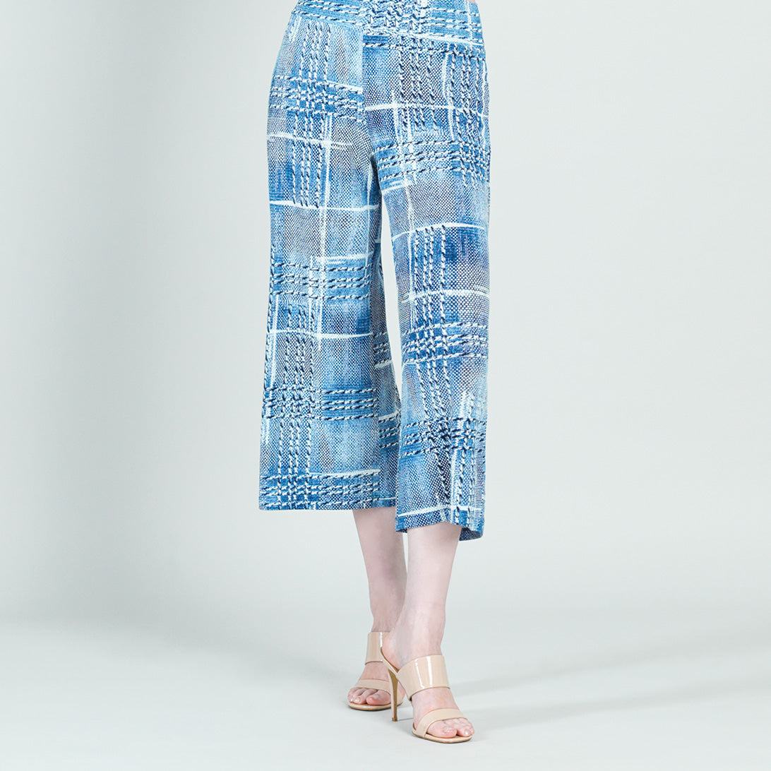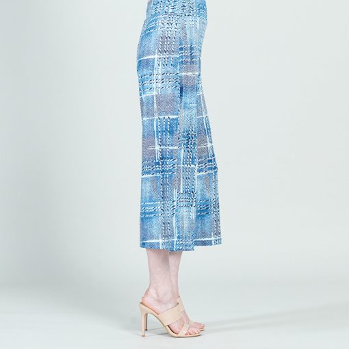 Clara Sunwoo Women’s Textured Modern Gaucho Pant – Denim Plaid – Final Sale! | Whiteblue