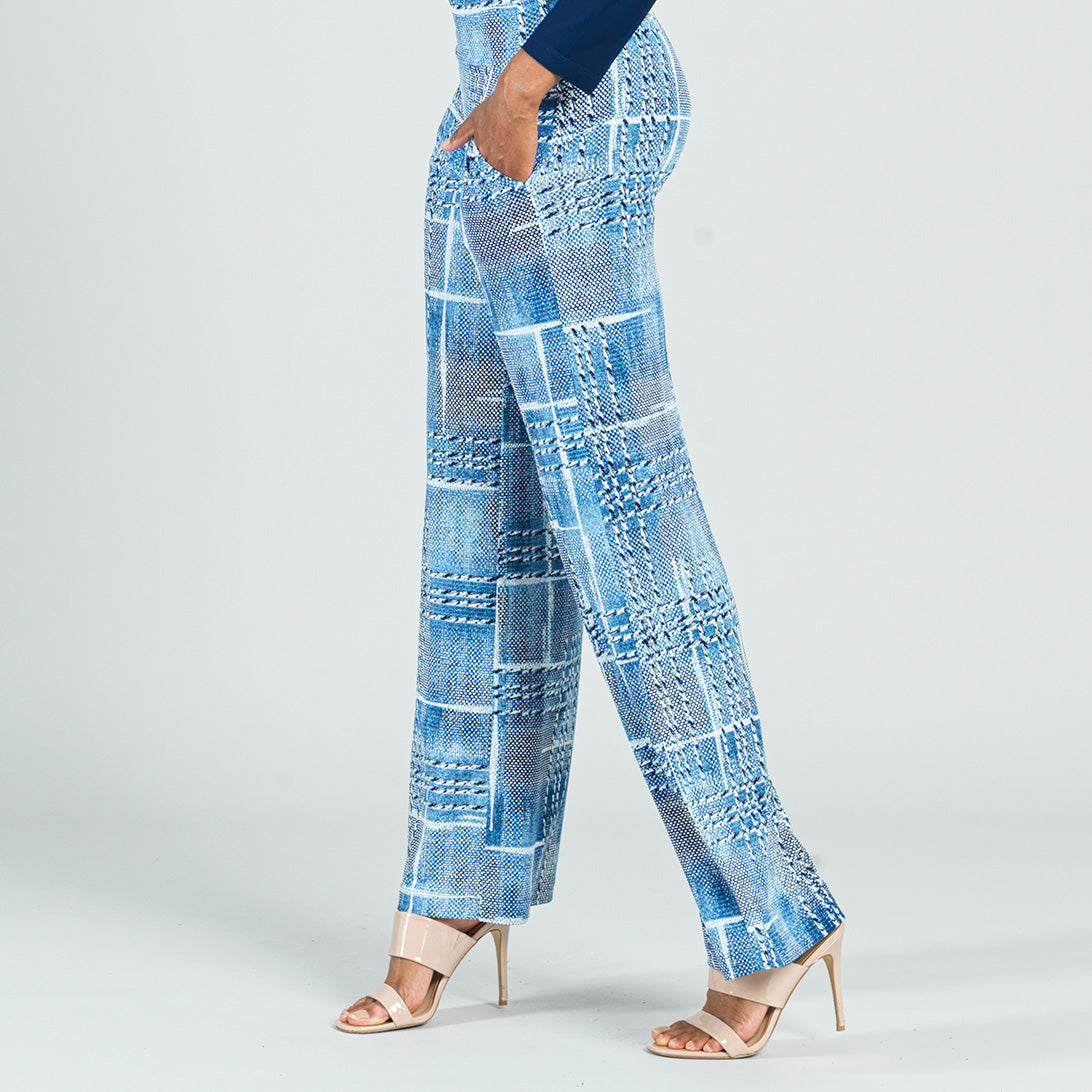 Clara Sunwoo Women’s Textured Wide Leg Pocket Pant – Denim Plaid – Final Sale! | Whiteblue